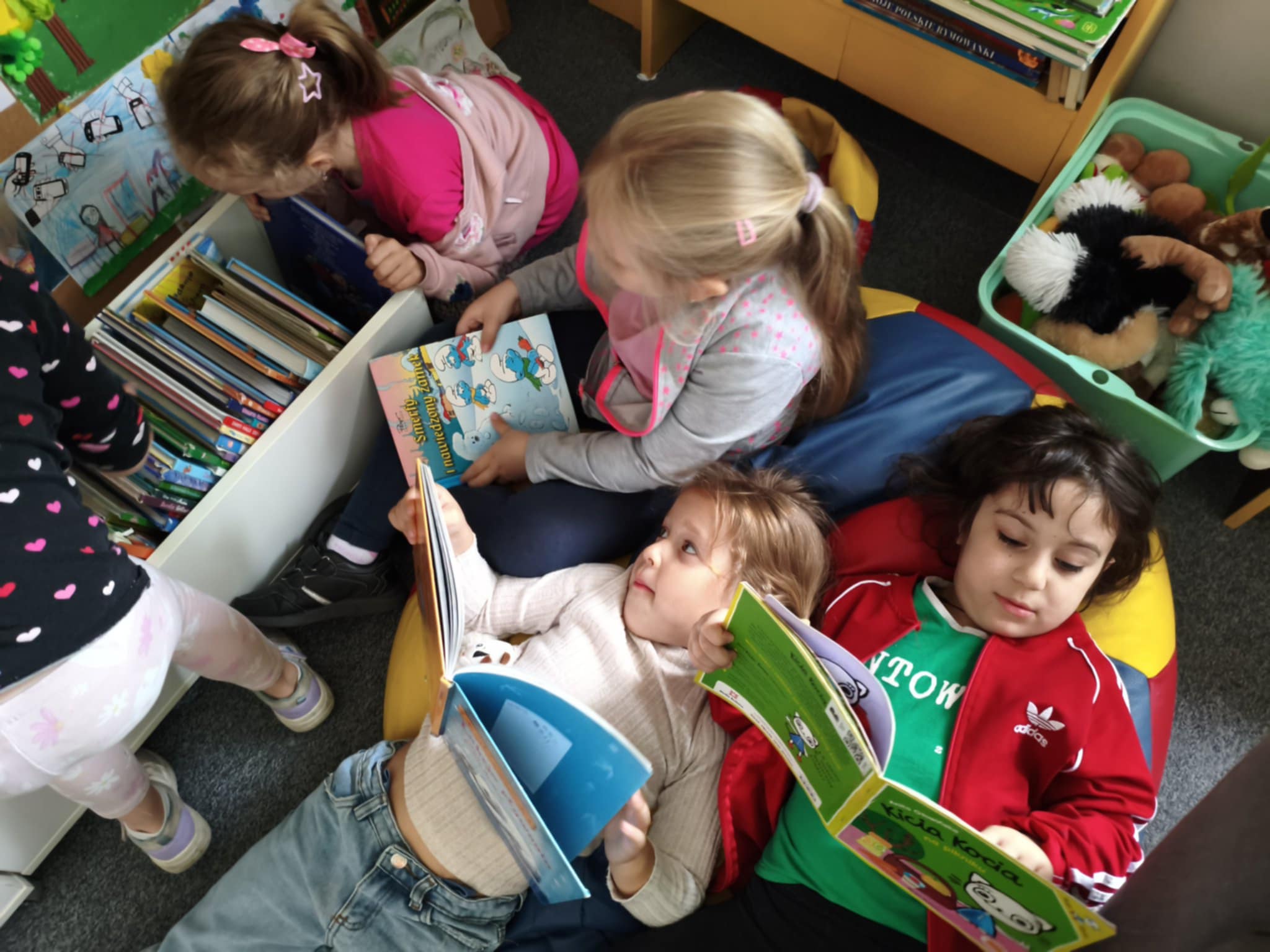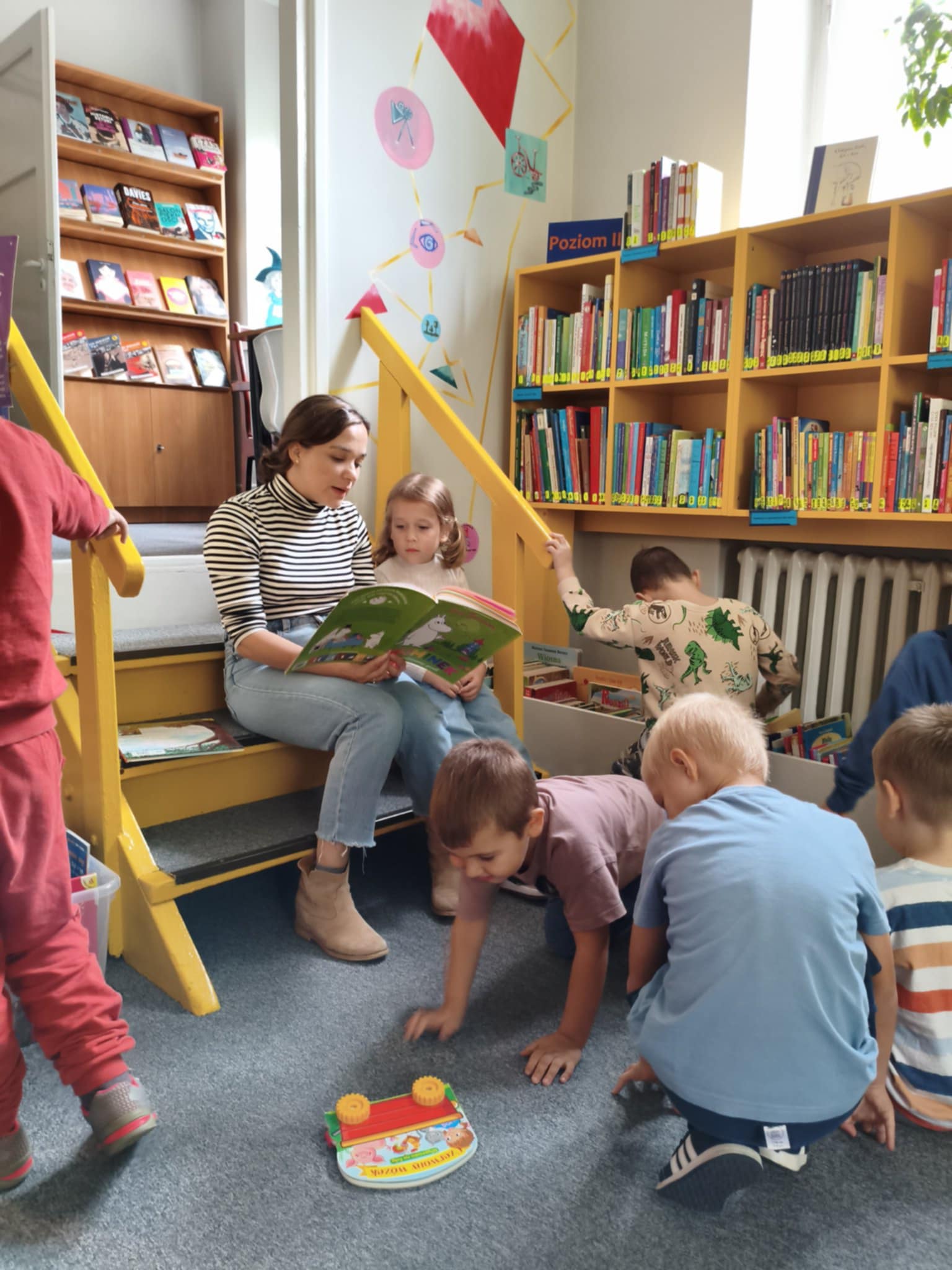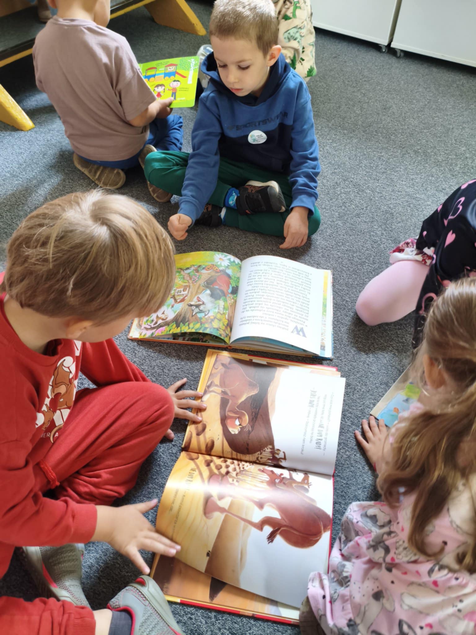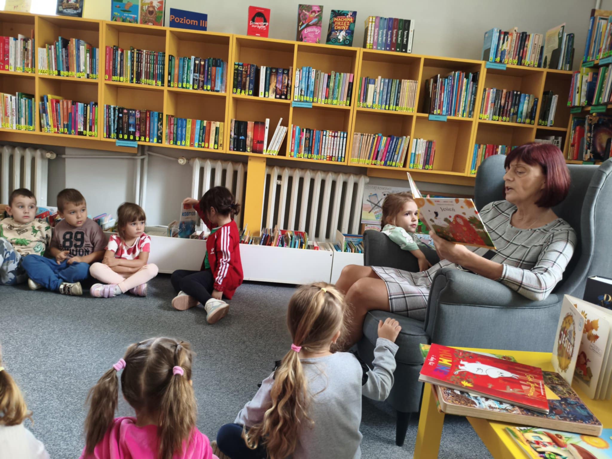W dniu dzisiejszym odwiedziliśmy pobliską bibliotekę, gdzie Pani bibliotekarka opowiedziała nam o jesieni. Zaprezentowała dzieciom wybrane utwory literackie o tematyce jesiennej. Na koniec każdy miał możliwość samodzielnego przeglądania książek.