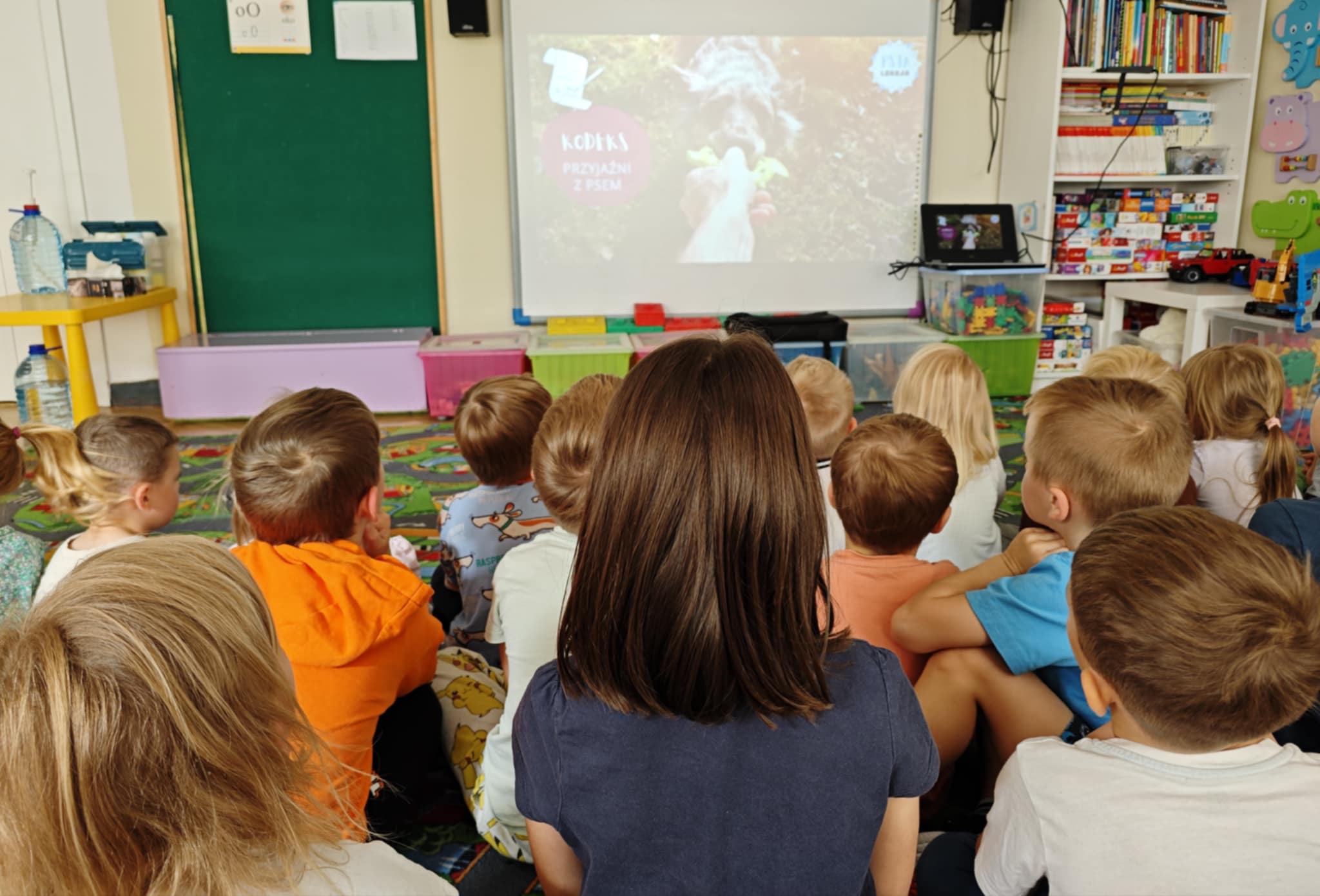 Dziś obejrzeliśmy film "Kodeks zachowania z psem", z którego dowiedzieliśmy się: jakie psy mają zwyczaje i upodobania, co lubią, a co ich denerwuje, jak postępować, by zachować bezpieczeństwo w kontakcie z psem oraz w jaki sposób się nimi opiekować. Mamy nadzieje, że udział w tym programie przyniesie naszym przedszkolakom wiele korzyści.