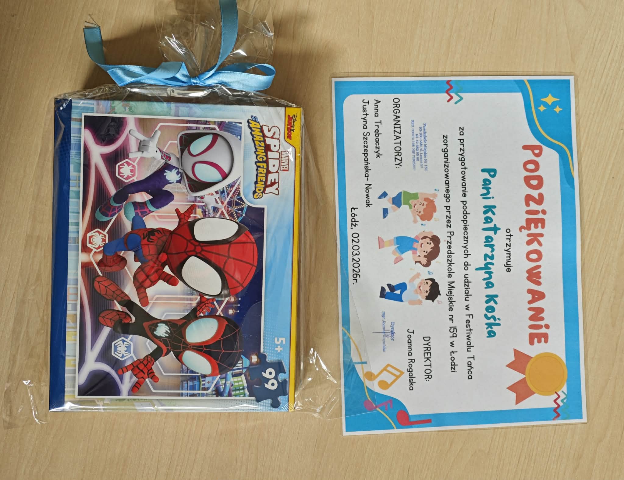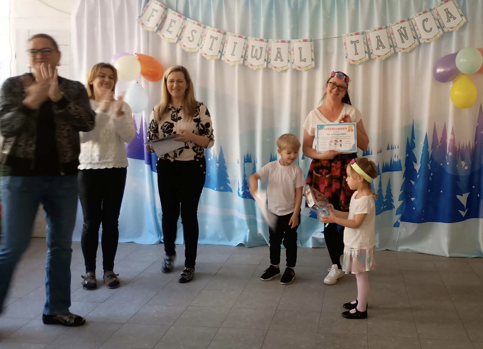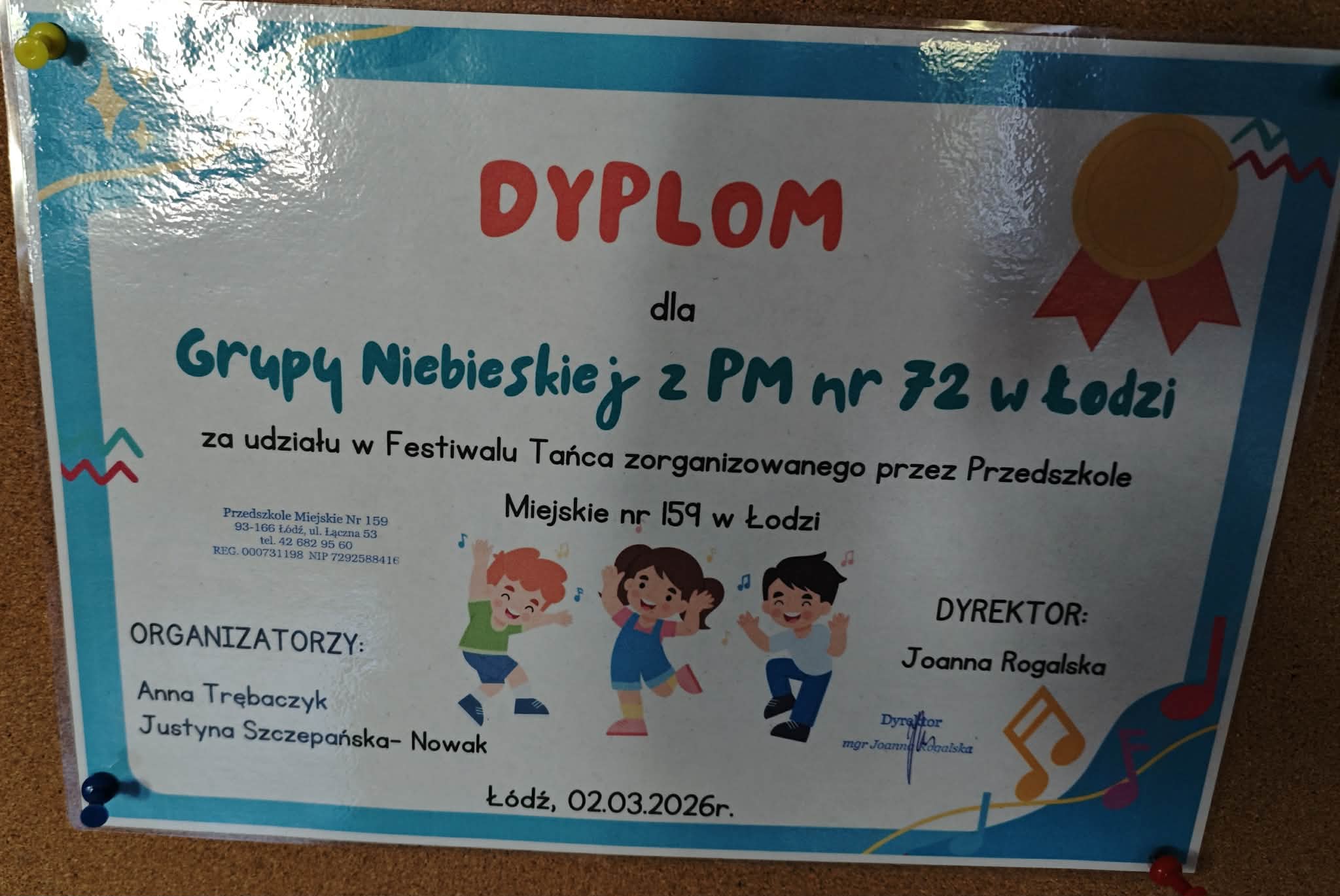 Dziś reprezentowaliśmy nasze przedszkole podczas przeglądu tanecznego, który odbywał się w PM 159. Nasza grupa przygotowała i zaprezentowała taniec poleczka do utworu ze słynnego Lata z radiem. W nagrodę otrzymaliśmy 99 elementowe puzzle i dyplomy. Dziękuję serdecznie Rodzicom za przygotowanie dzieciom odpowiedniego ubioru.