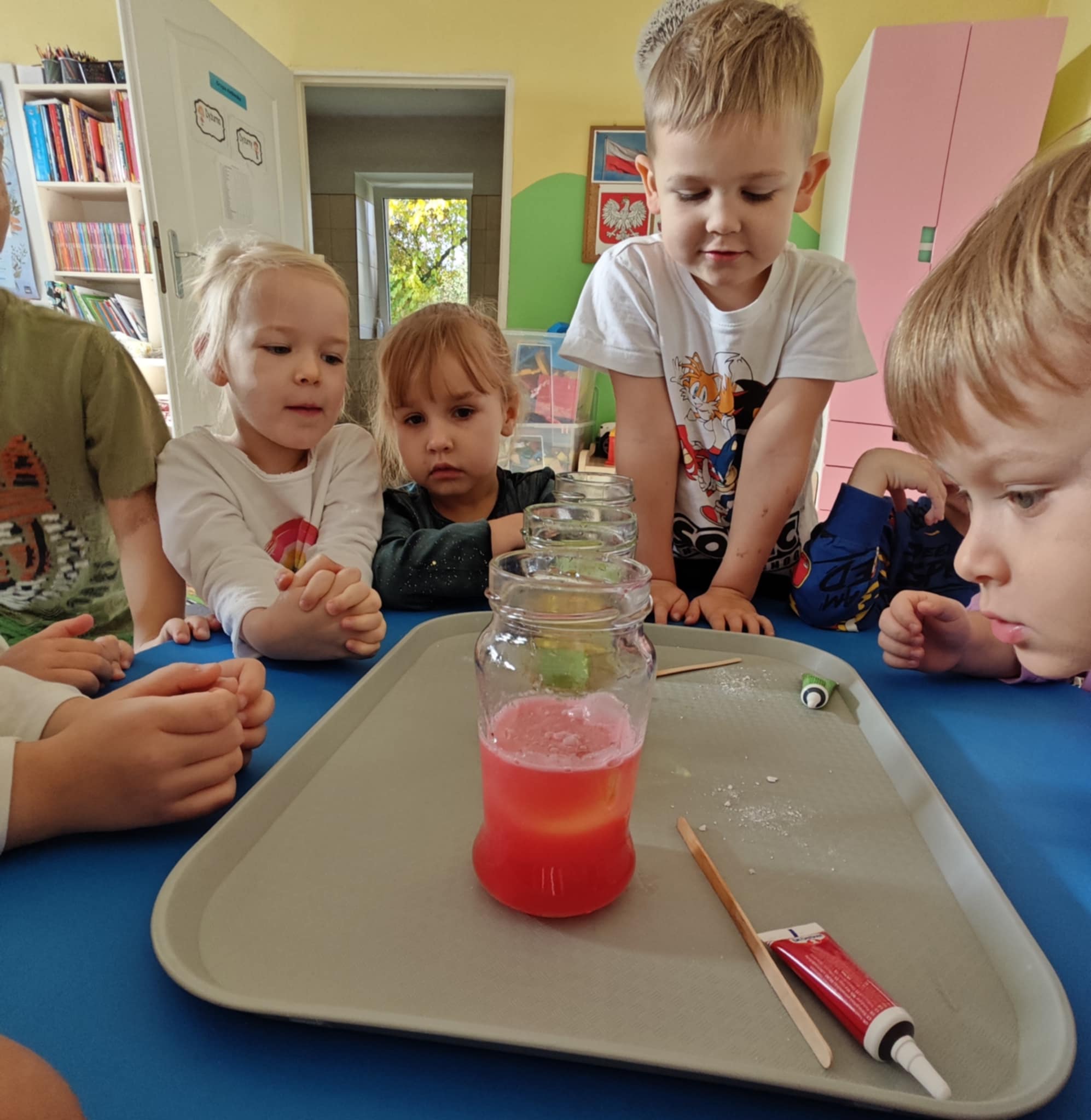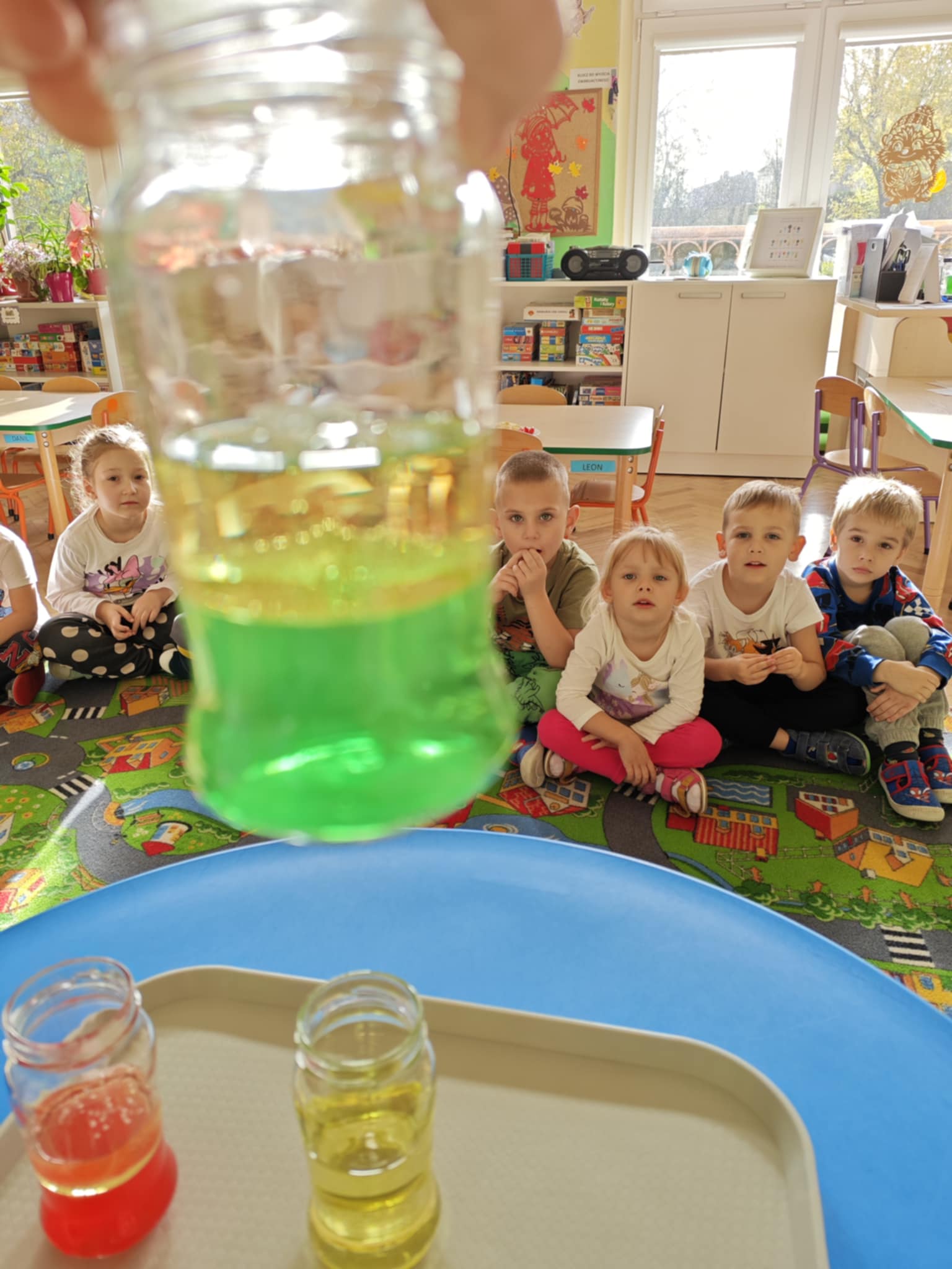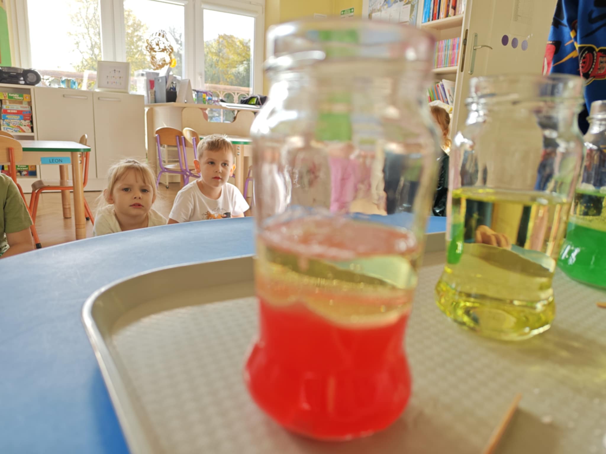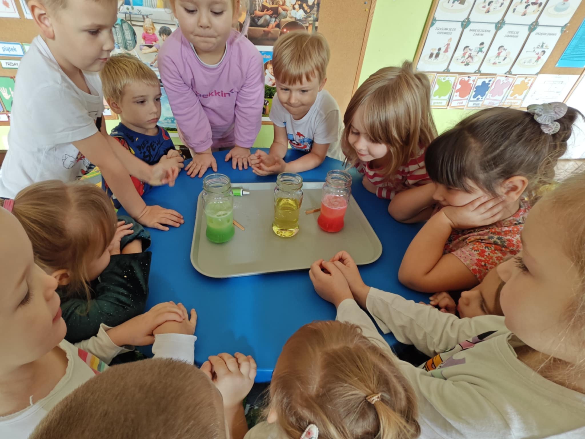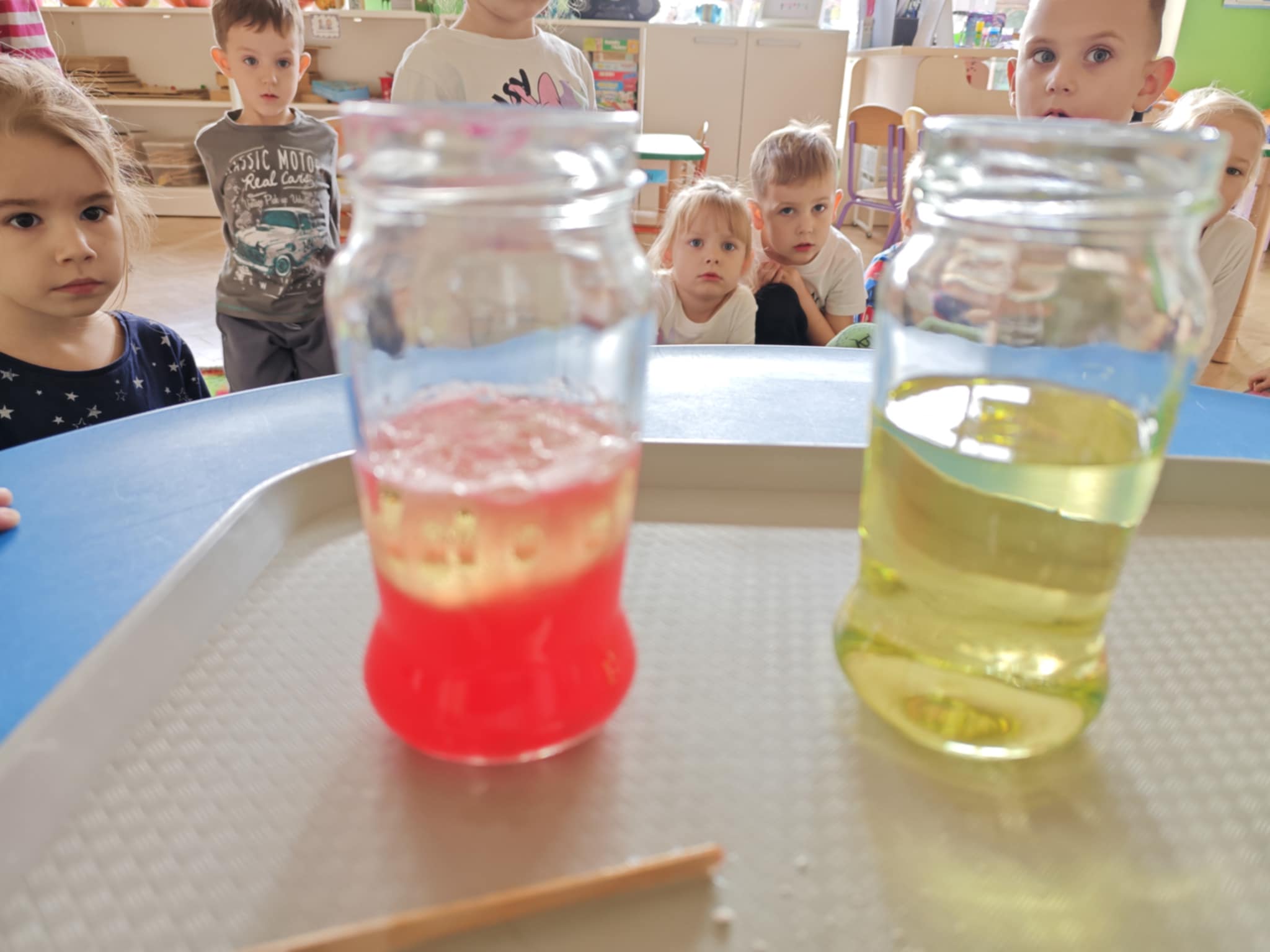 Zapraszam do obejrzenia kilku zdjęć z przeprowadzonego doświadczenia z wodą, olejem i tabletką musującą.