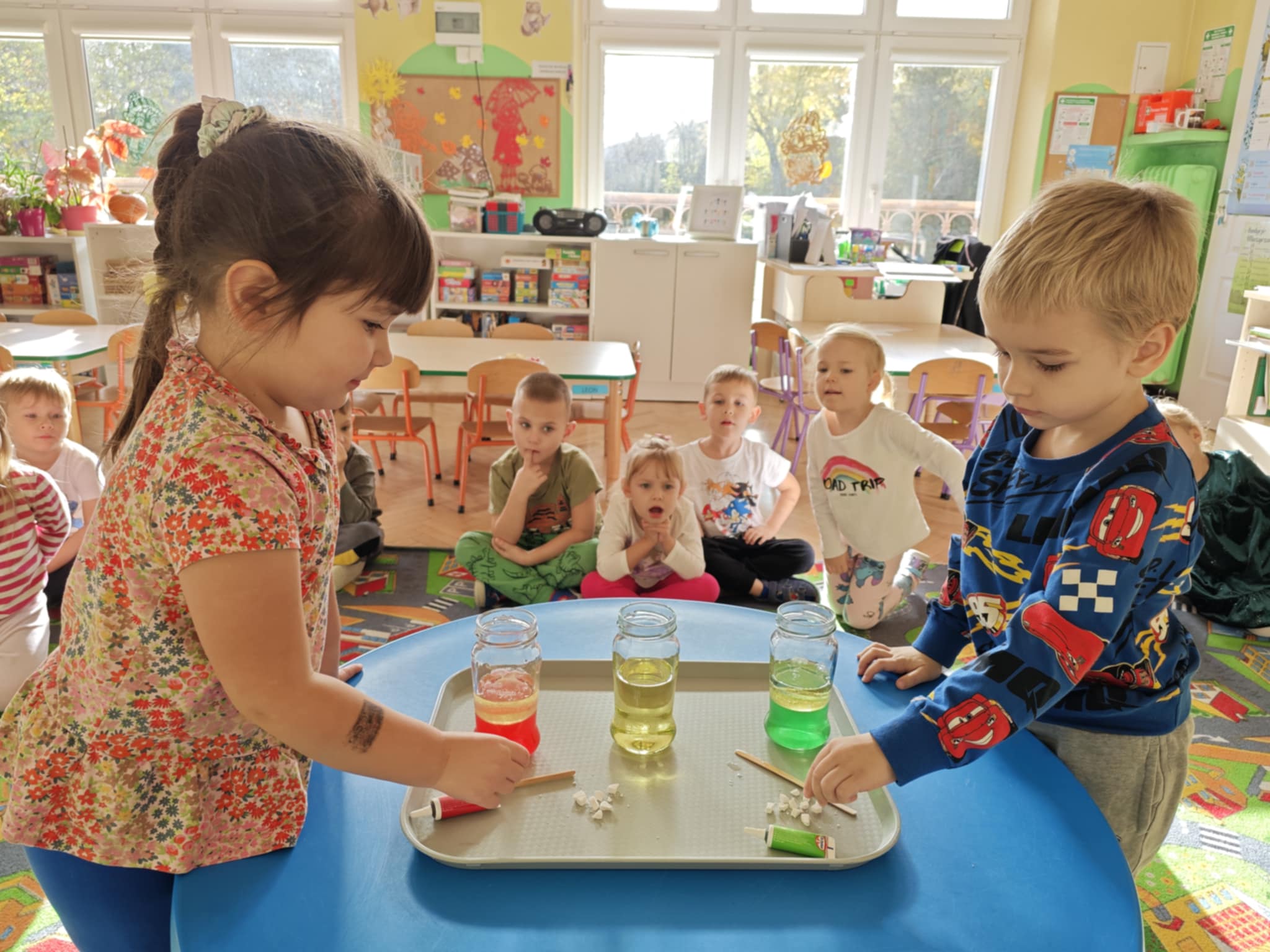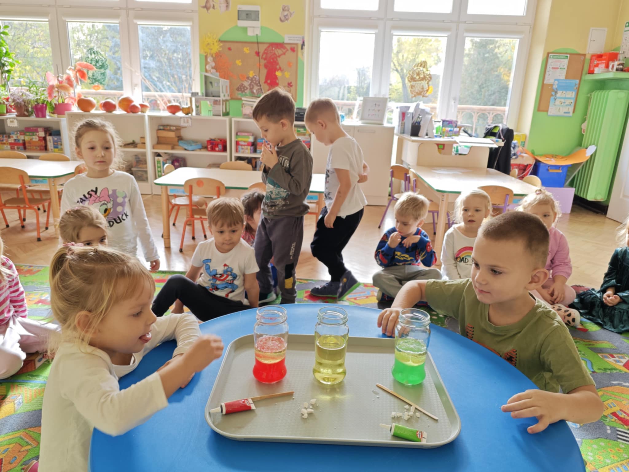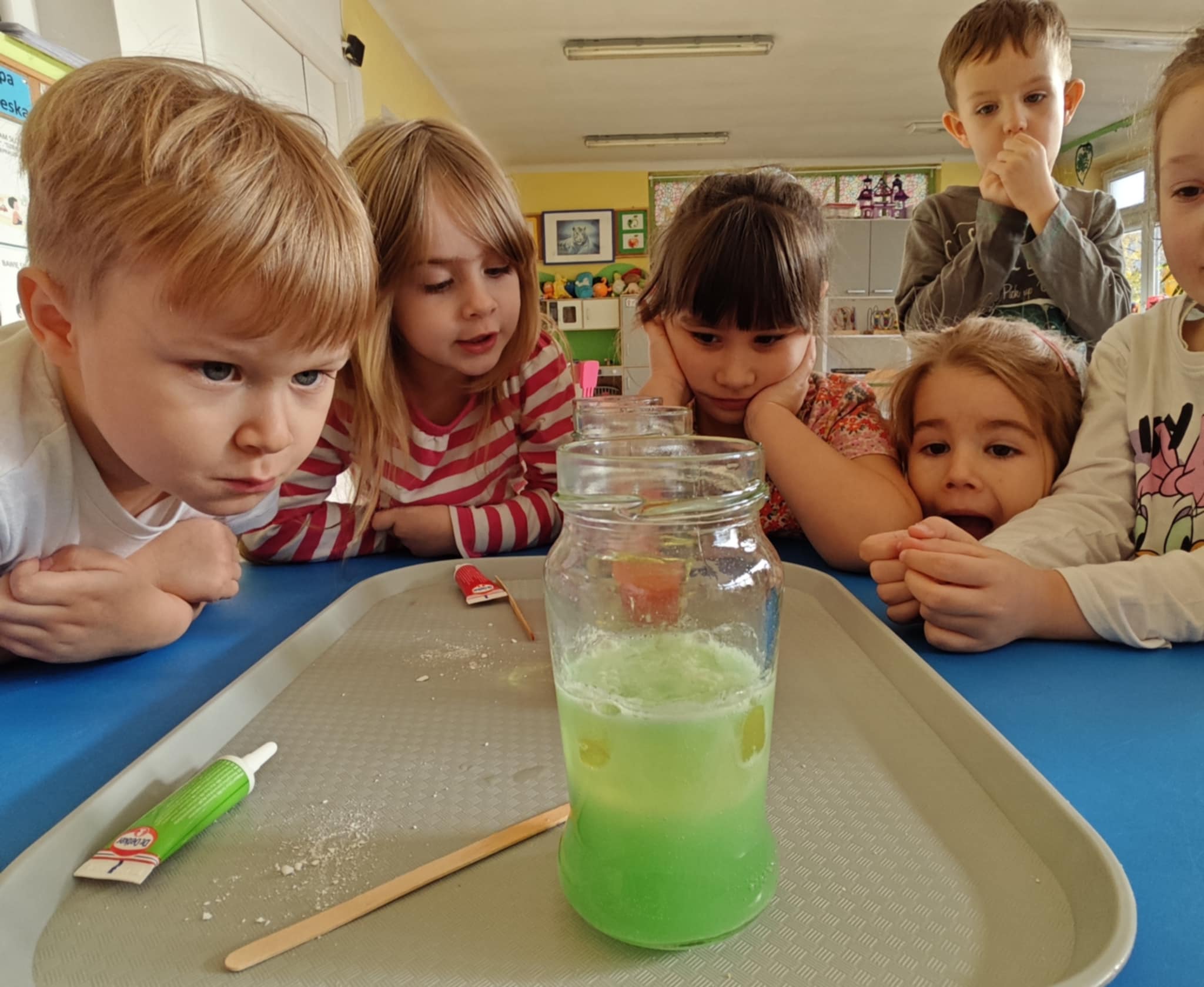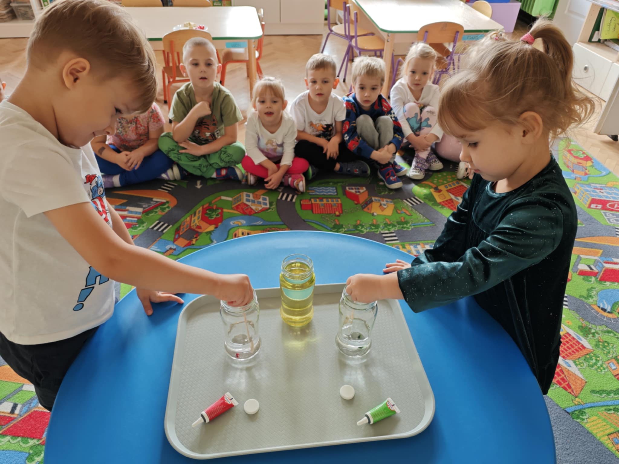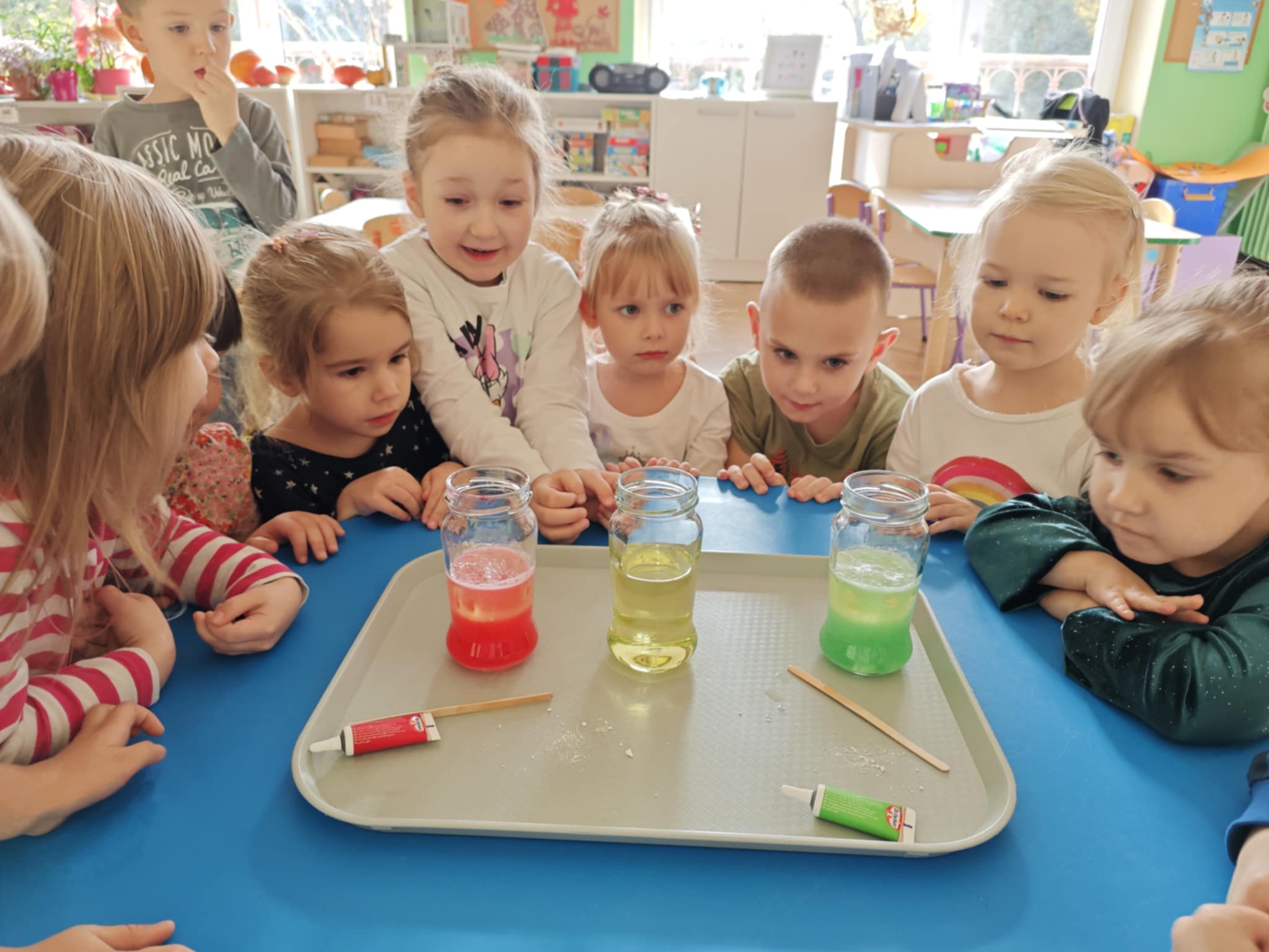 Zapraszam do obejrzenia kilku zdjęć z przeprowadzonego doświadczenia z wodą, olejem i tabletką musującą.