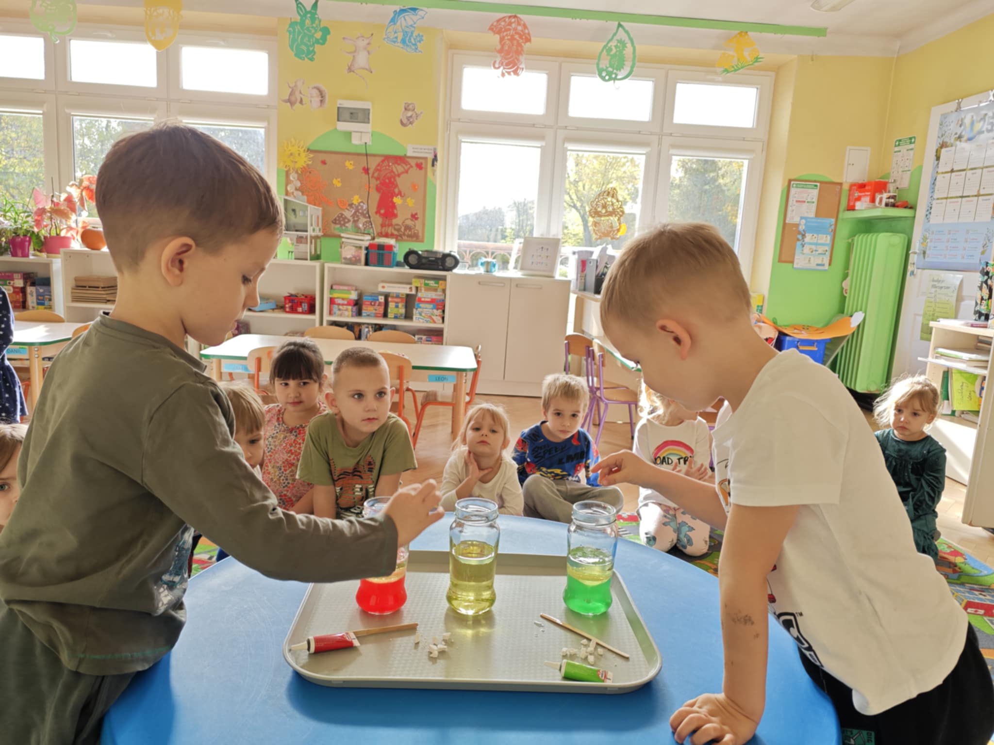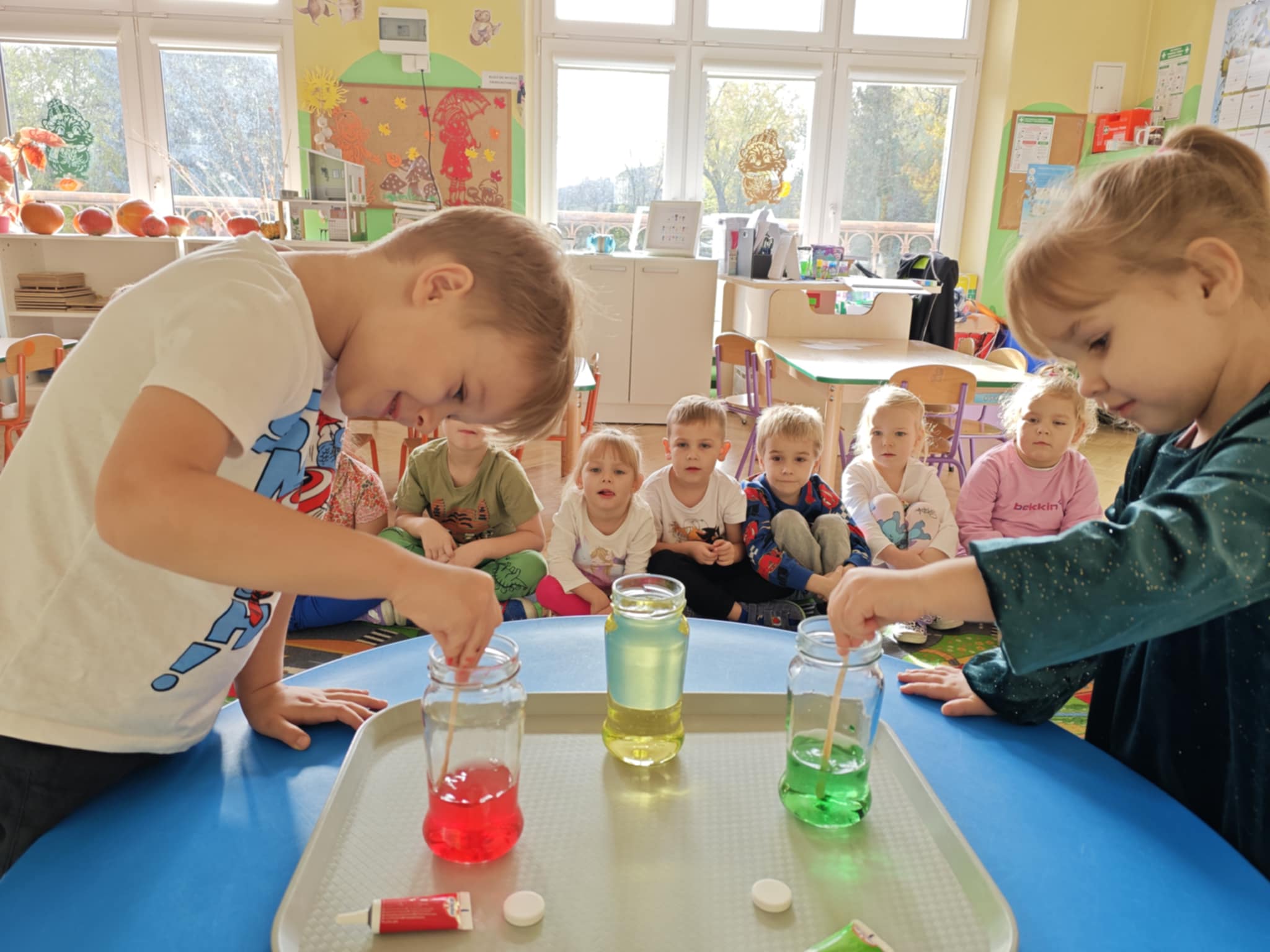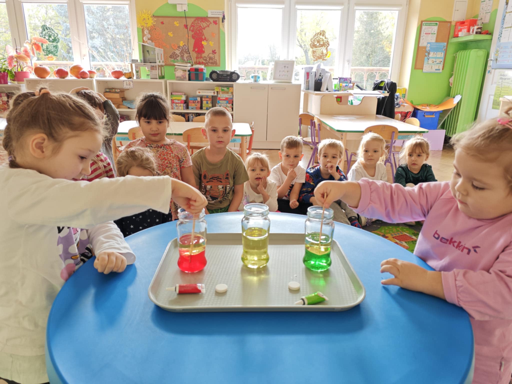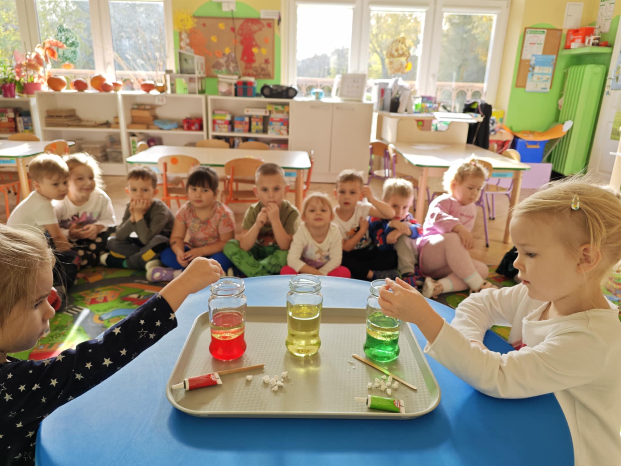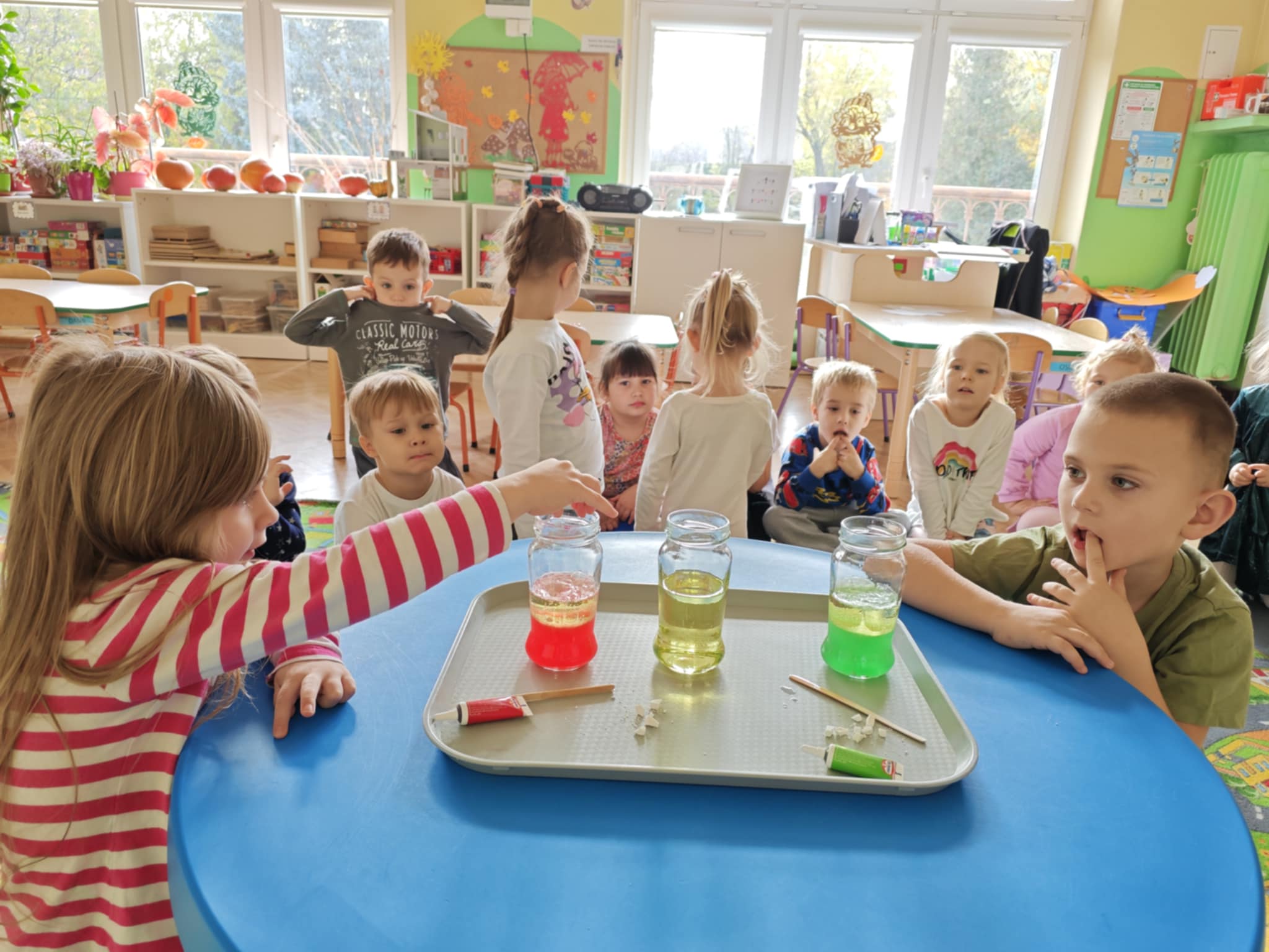 Zapraszam do obejrzenia kilku zdjęć z przeprowadzonego doświadczenia z wodą, olejem i tabletką musującą.