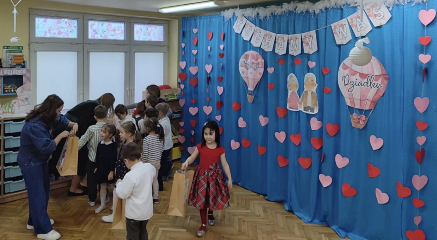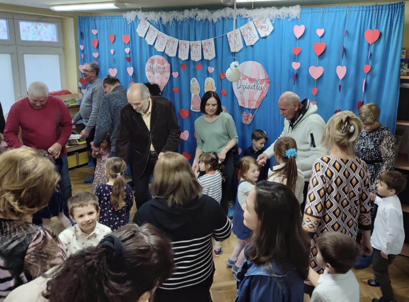Dzień Babci i Dziadka jest już na stałe wpisany w kalendarz uroczystości przedszkolnych. Z tej okazji dzieci z naszej grupy przygotowały dla dziadków krótki występ artystyczny, podczas którego recytowały wiersze i śpiewały piosenki, wyrażając w ten sposób swoją miłość i wdzięczność za ich trud i oddanie. Na zakończenie dzieci wręczyły swoim bliskim własnoręcznie wykonane upominki. Serdecznie dziękujemy wszystkim, którzy dali się namówić na wspólne pląsanie przy muzyce. Wszystkim Babciom i Dziadkom życzymy dużo zdrowia, szczęścia i pogody ducha na każdy dzień!