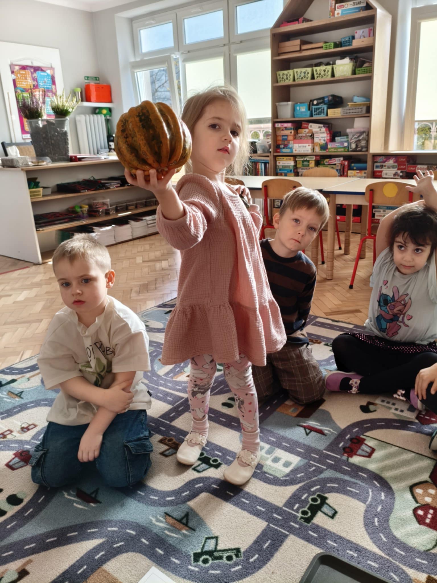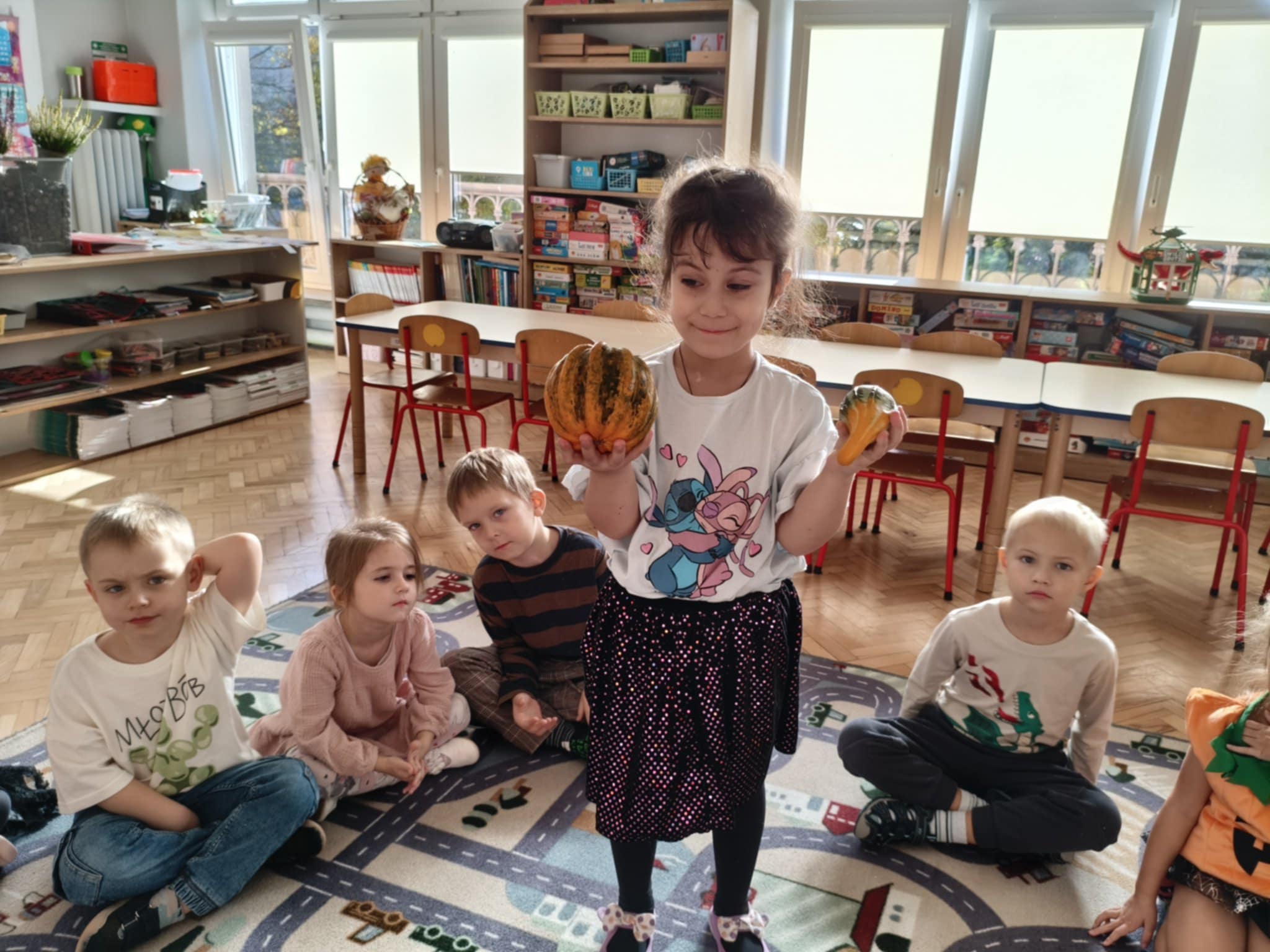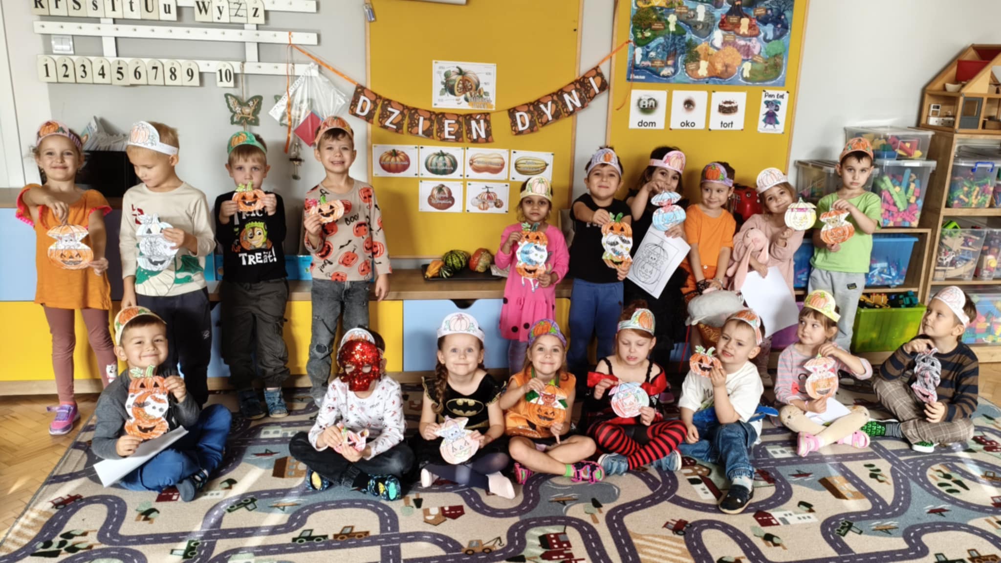 31 października obchodziliśmy w naszej grupie Dzień Dyni. Były tańce i zabawa, a także dyniowe zawody. Zobaczyliśmy, co kryje się w środku dyni oraz pod jaką postacią można ją spożywać. Dynia była także inspiracją do pracy plastycznej.