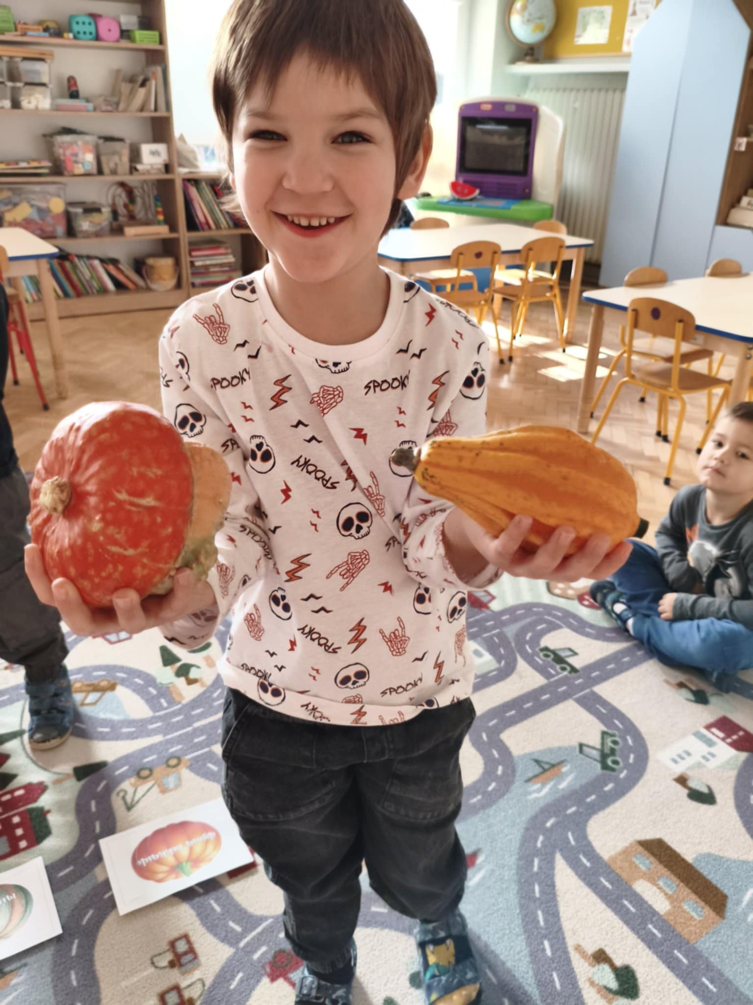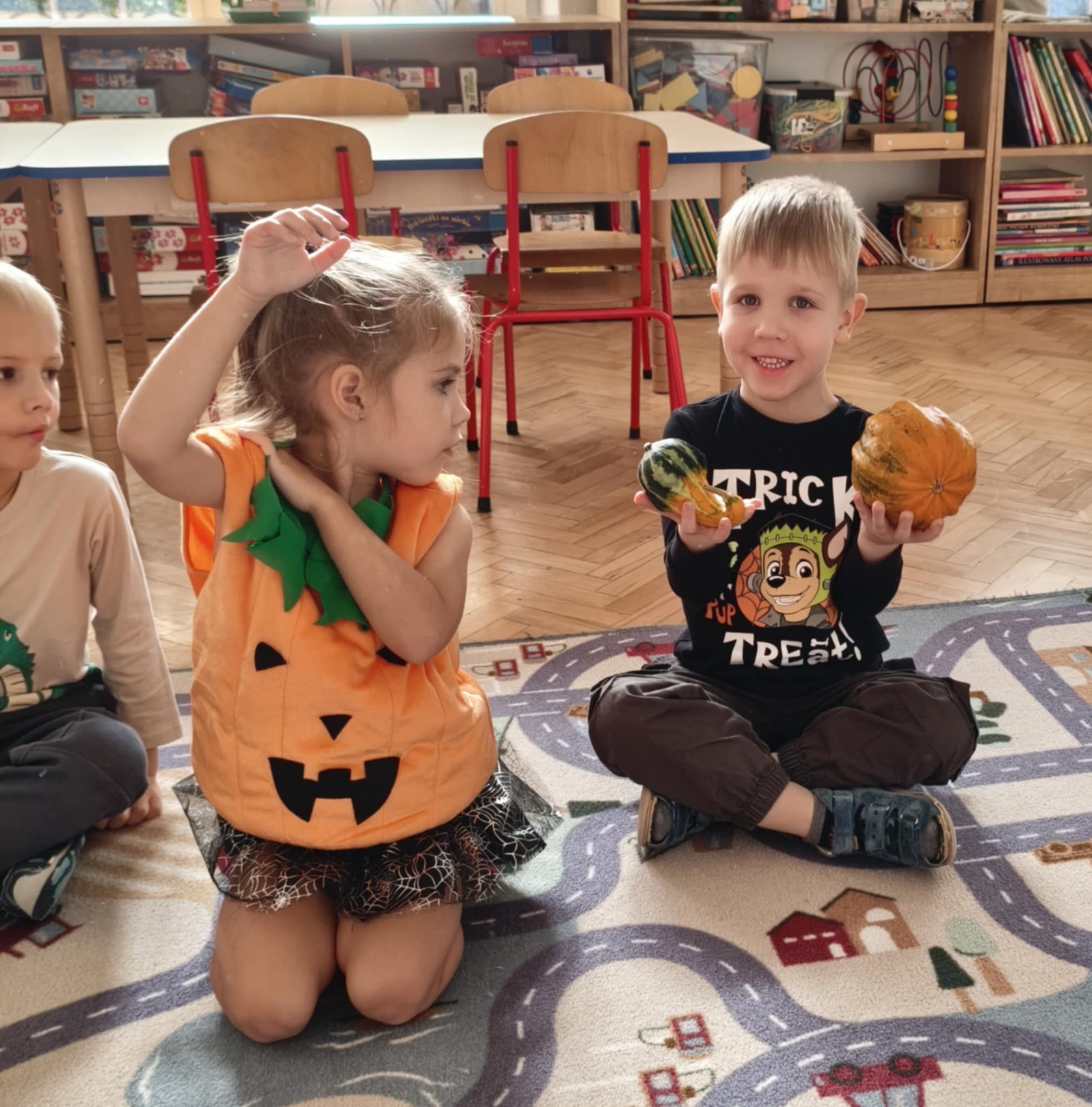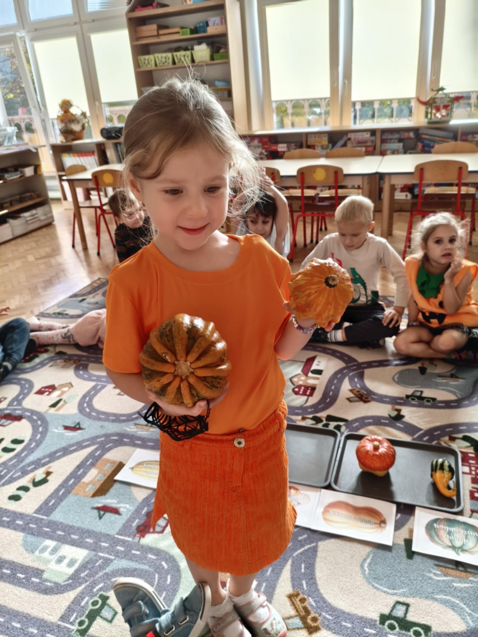 31 października obchodziliśmy w naszej grupie Dzień Dyni. Były tańce i zabawa, a także dyniowe zawody. Zobaczyliśmy, co kryje się w środku dyni oraz pod jaką postacią można ją spożywać. Dynia była także inspiracją do pracy plastycznej.