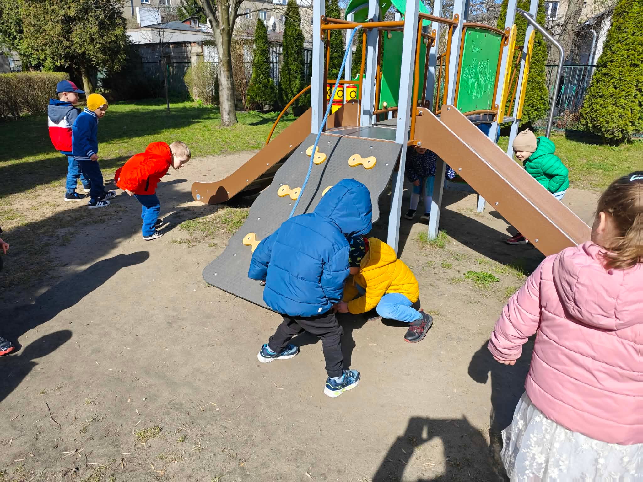 Nasze przedszkolaki miały dziś za zadanie odnaleźć w przedszkolnym ogrodzie 30 ukrytych przez zajączka czekoladowych jajeczek. Oczywiście odnaleźli wszystkie.