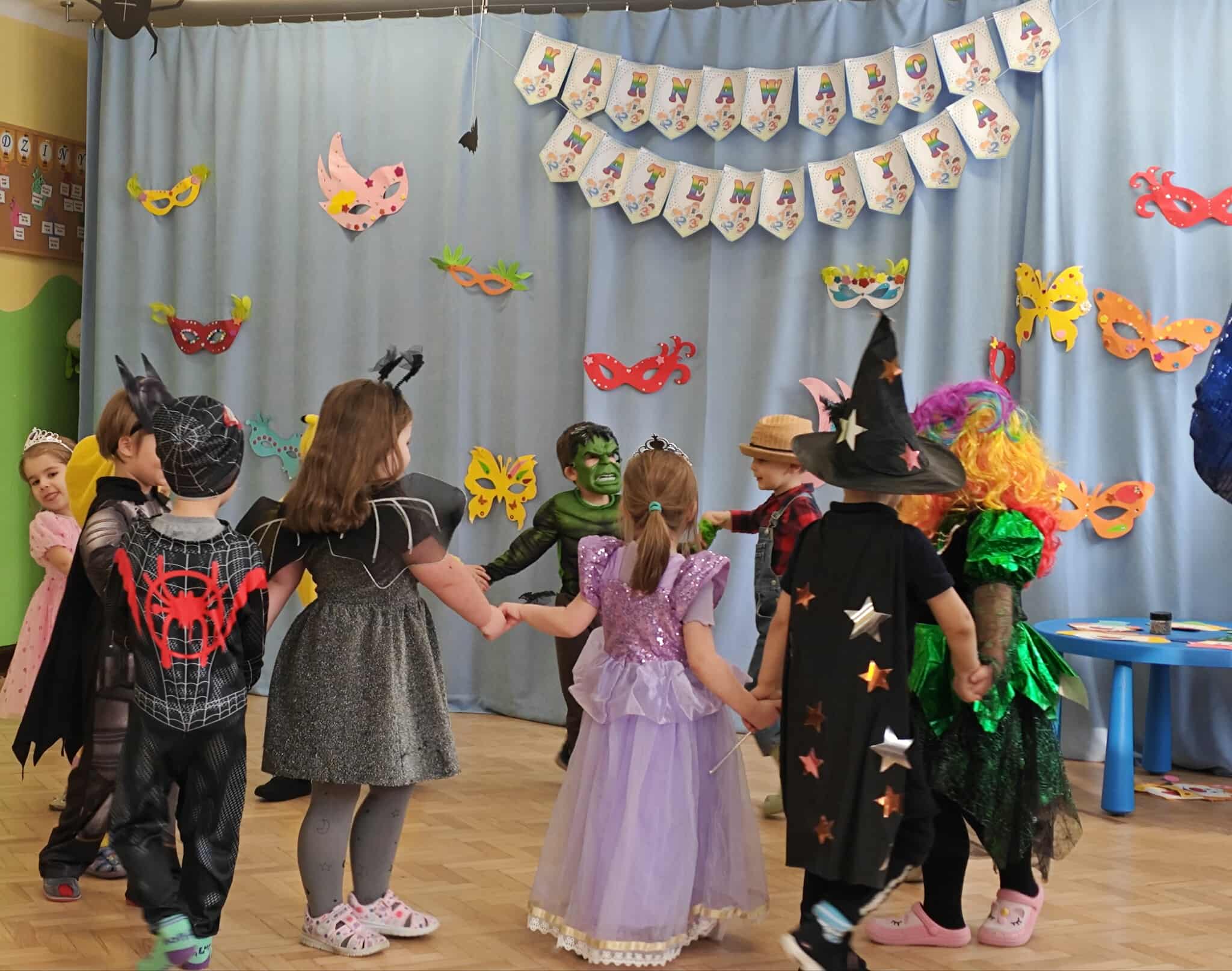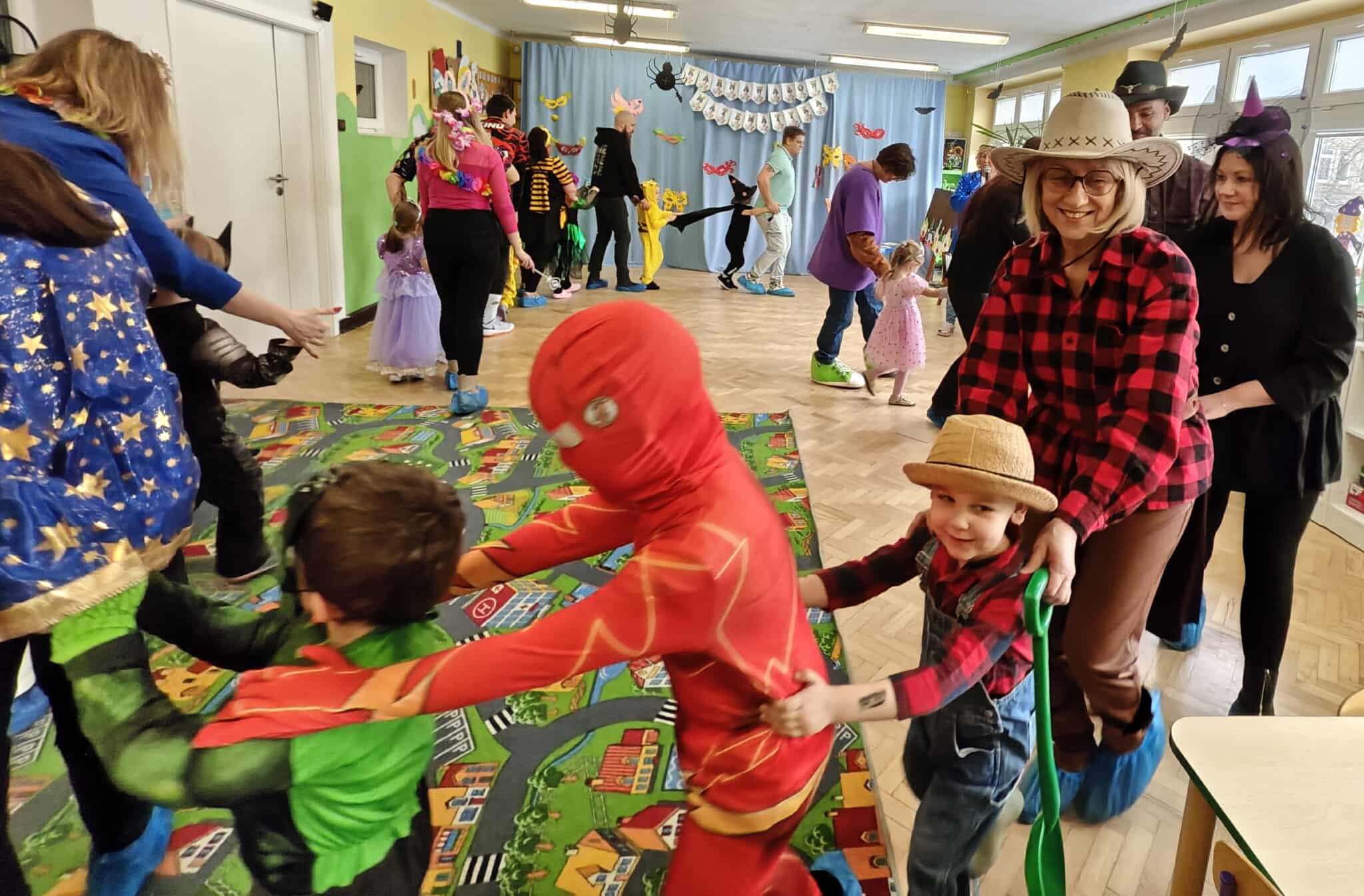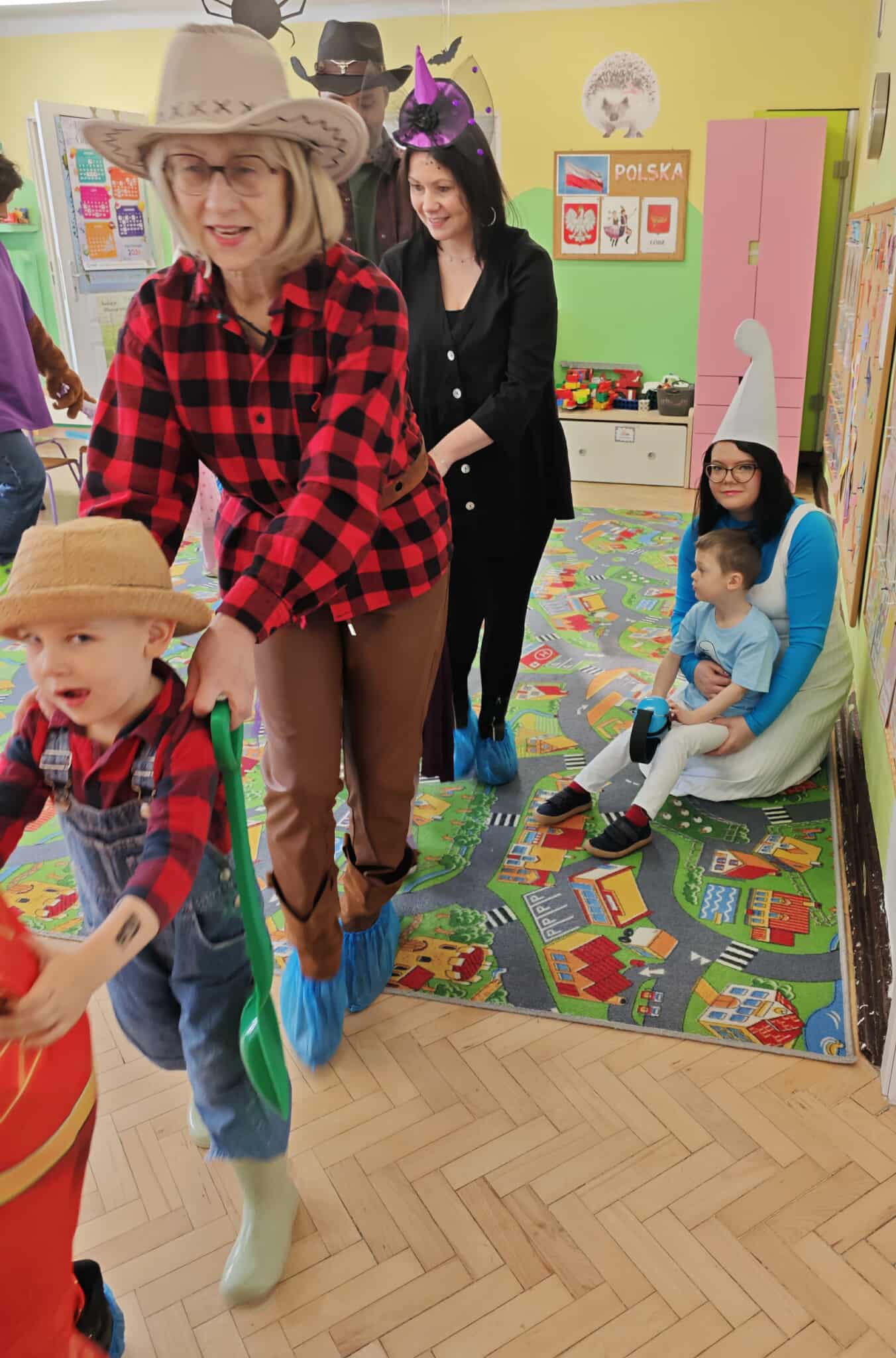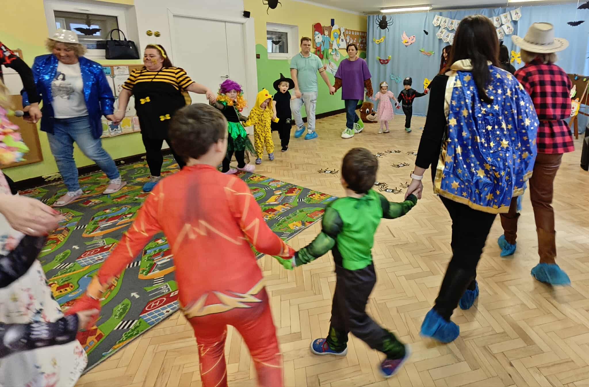 Tańce, matematyczne zgadywanki, prezentacja strojów, taniec z miotłą i wiele innych atrakcji. A wszystko to na jednych zajęciach z Rodzicami. Dziękujemy serdecznie Rodzicom za przybycie oraz przygotowanie karnawałowych strojów dla siebie i dzieci. Mamy nadzieję, że zajęcia dostarczyły Państwu wielu radosnych przeżyć. Pokazaliście dzieciom, że w każdym wieku można się świetnie bawić, trzeba tylko chcieć.