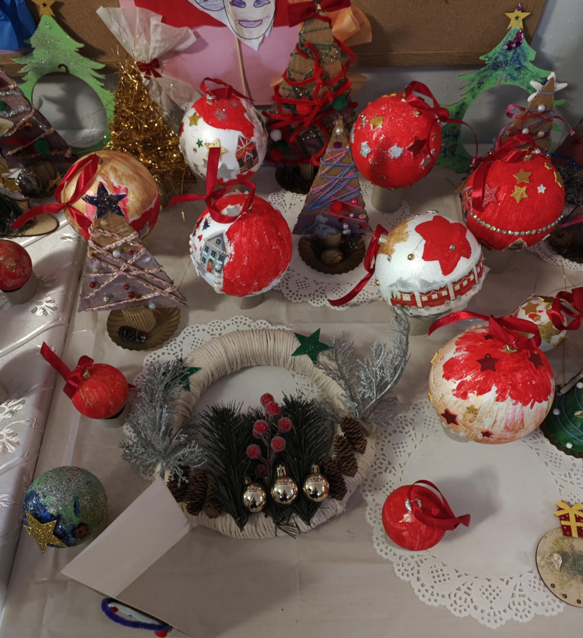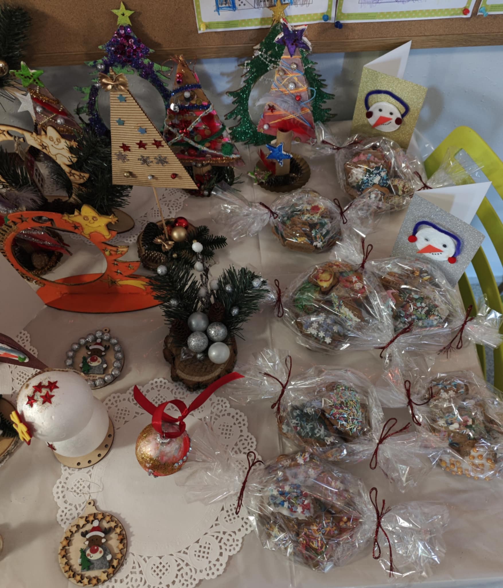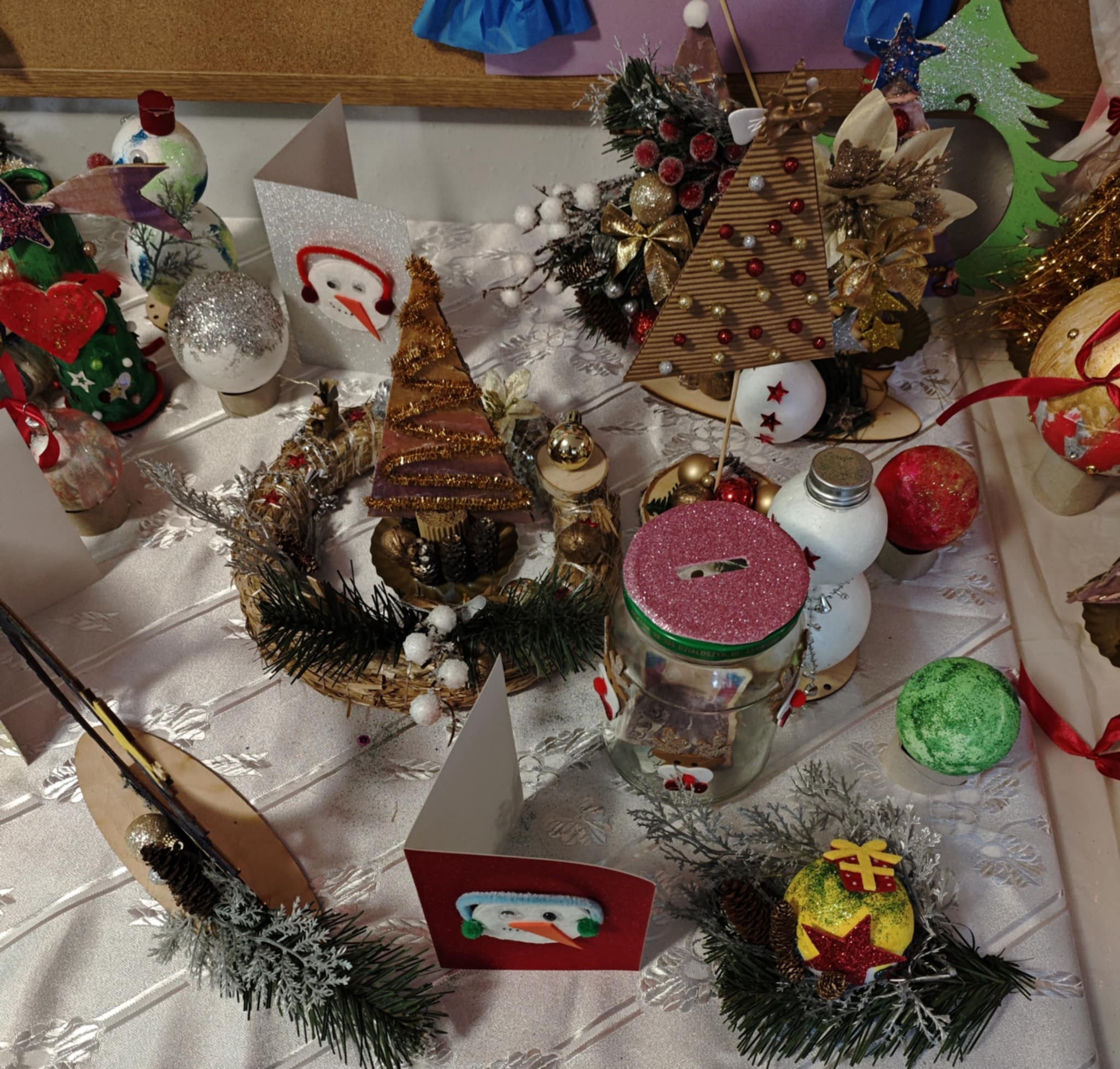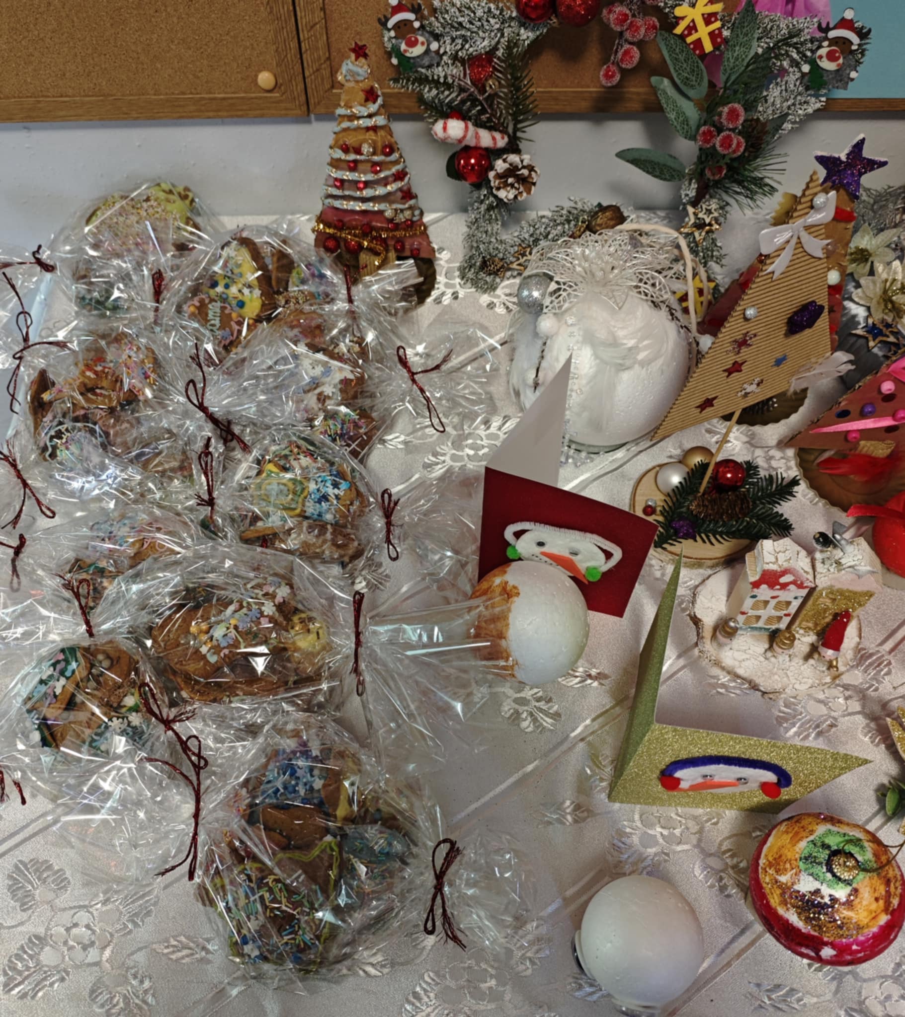 W imieniu Rady Pedagogicznej serdecznie dziękujemy wszystkim, którzy zaangażowali się w przygotowanie stroików, ozdób świątecznych, pierniczków na nasz kiermasz, z którego dochód w całości przekażemy na Stowarzyszenie Zwierzęta Ludziom zajmujące się dogoterapią. Mamy nadzieję, że choć w niewielkim stopniu przyczynimy się do umilenia chorym czasu spędzanego w szpitalach. Nasze stoły uginały się od ozdób i podarków, a słoik szybko zapełniał.