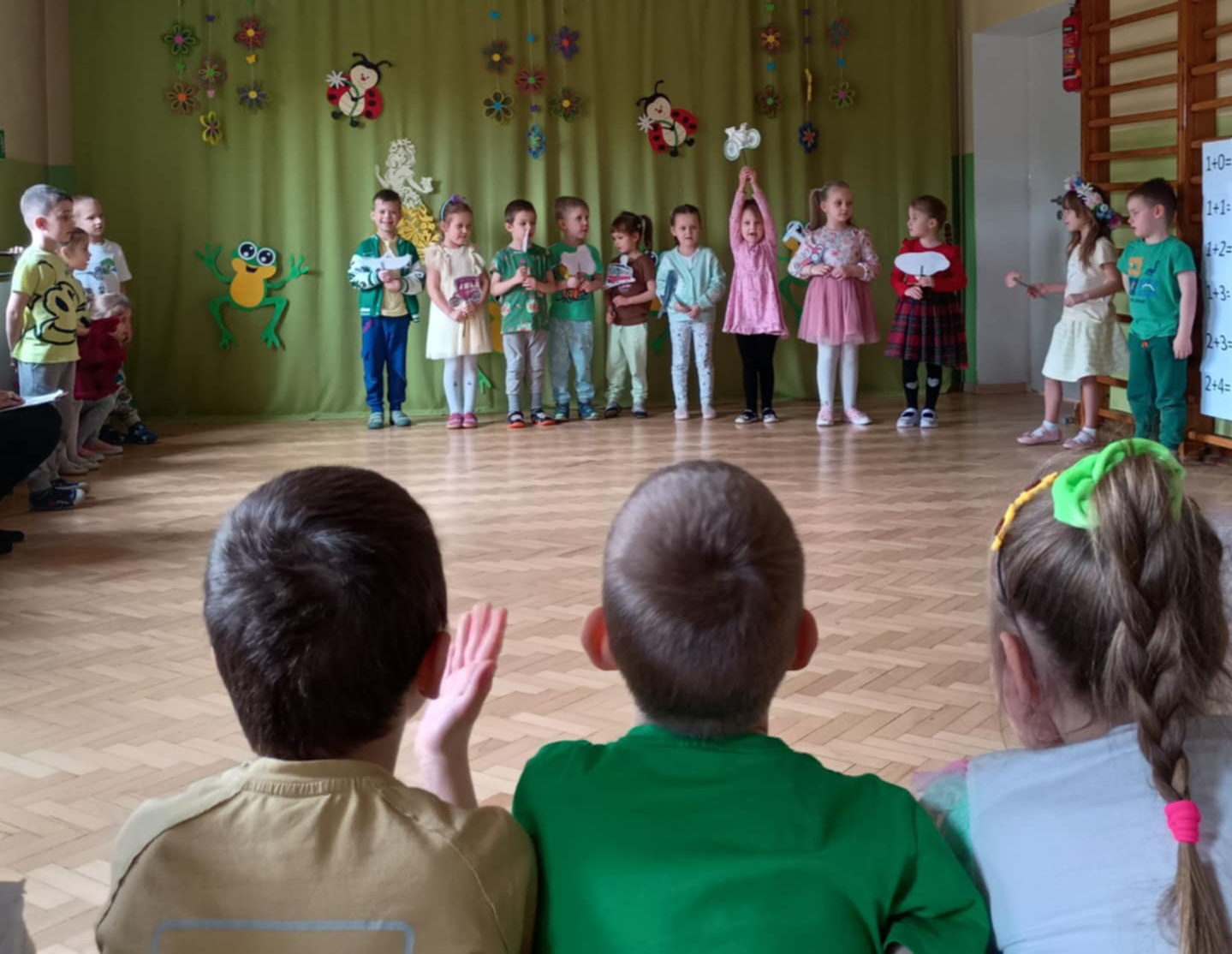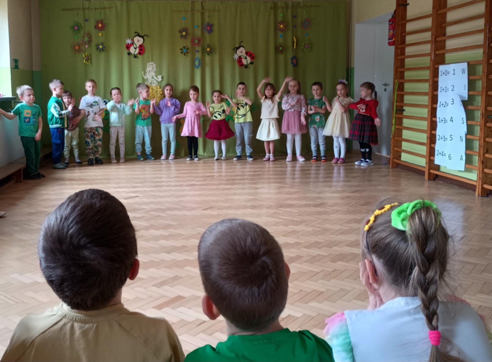 W dniu dzisiejszym dzieci z grupy zielonej i czerwonej wzięły udział w uroczystości "Powitanie wiosny". Dzieci wysłuchały opowiadania "Topienie Marzanny", samodzielnie topiły papierowe Marzanny, rozwiązywały wiosenne zadania matematyczne, tańczyły do muzyki klasycznej, prezentowały wiersze i piosenki o wiosennej tematyce, a następnie wzięły udział w quizie "Wiosenni milionerzy". Na koniec otrzymały kolorowanki z sylwetą Marzanny.