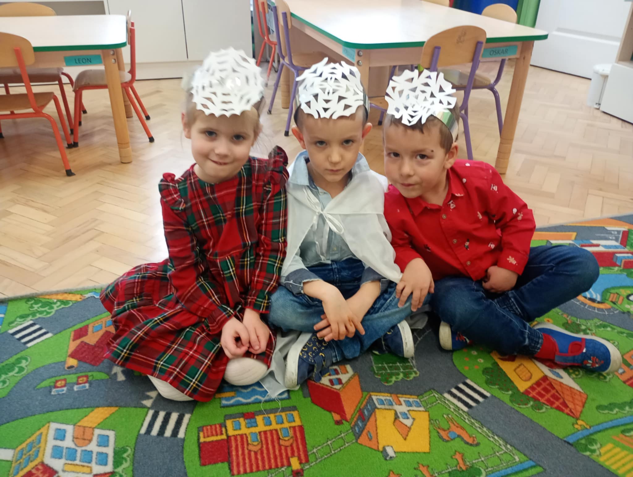 Dzieci przygotowują się do świątecznego spotkania z Rodzicami, wspólnie z Paniami wykonały ozdobne opaski ze śnieżynkami. Zapraszamy do obejrzenia kilku zdjęć.