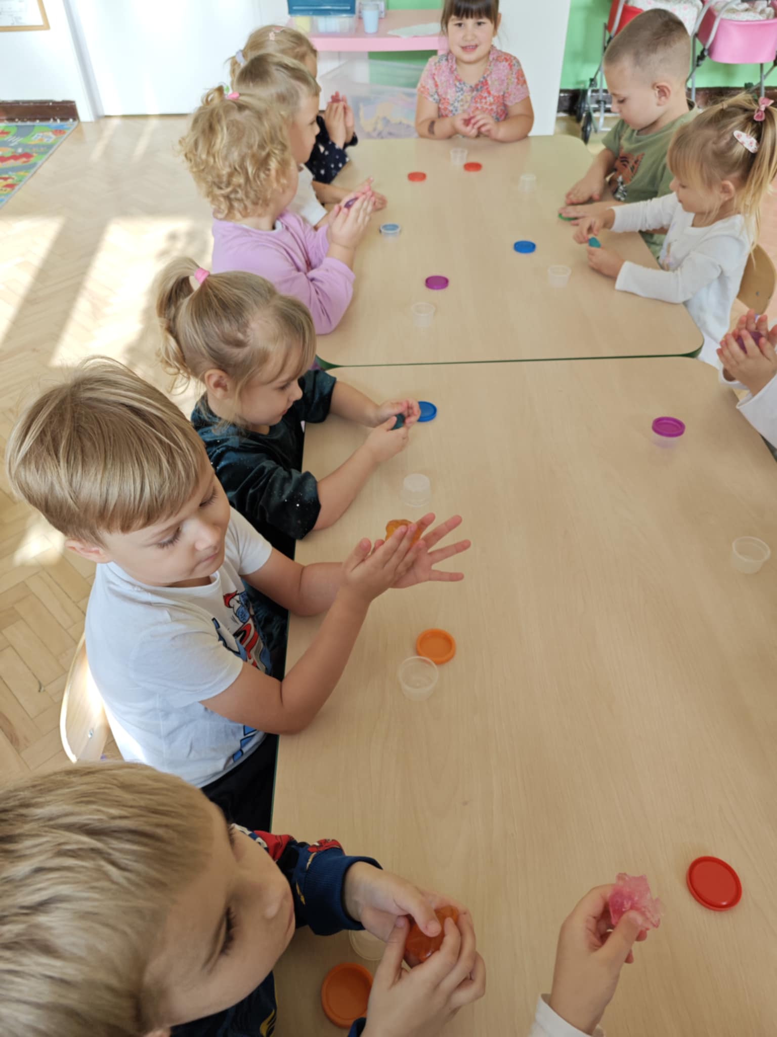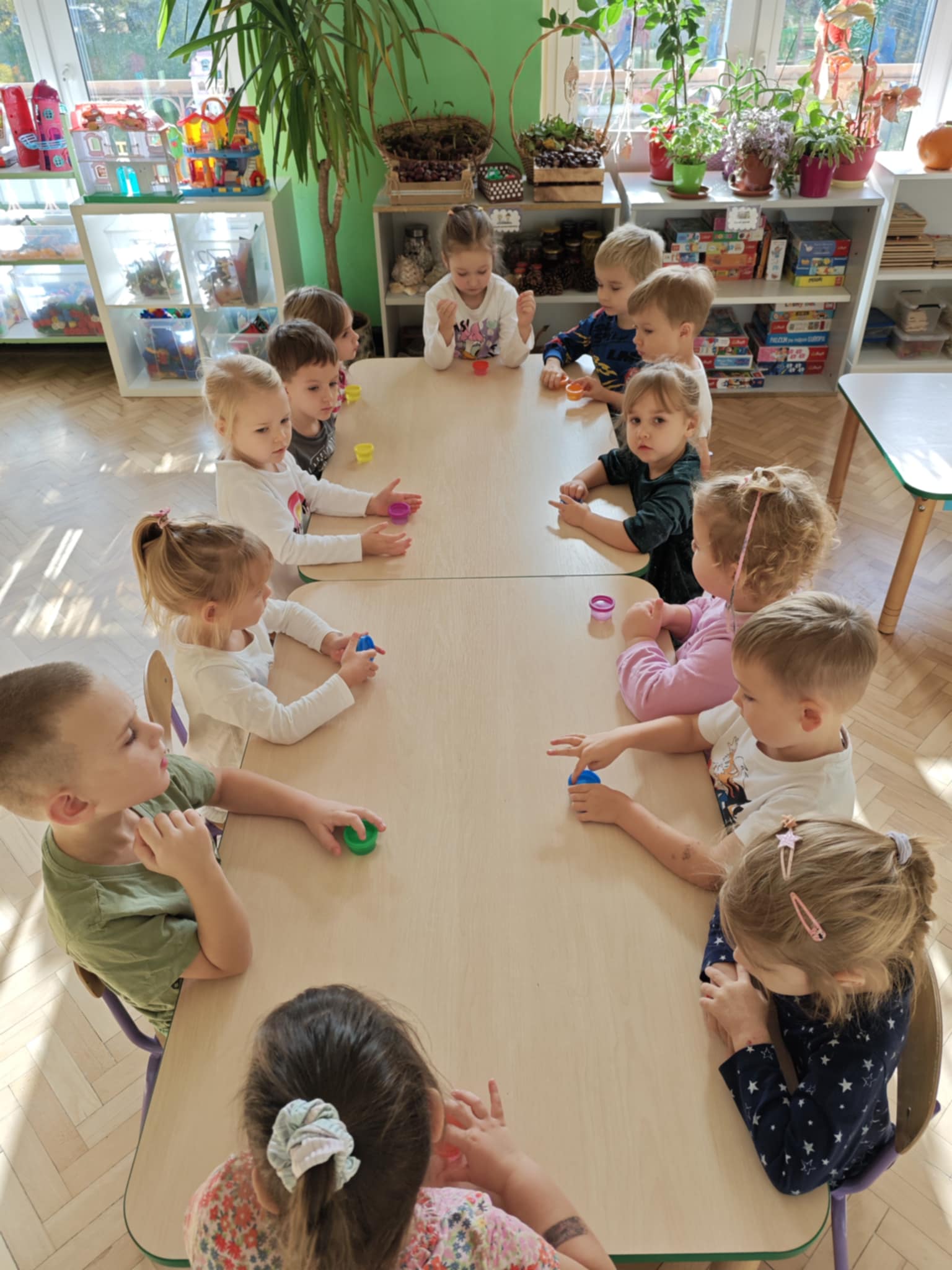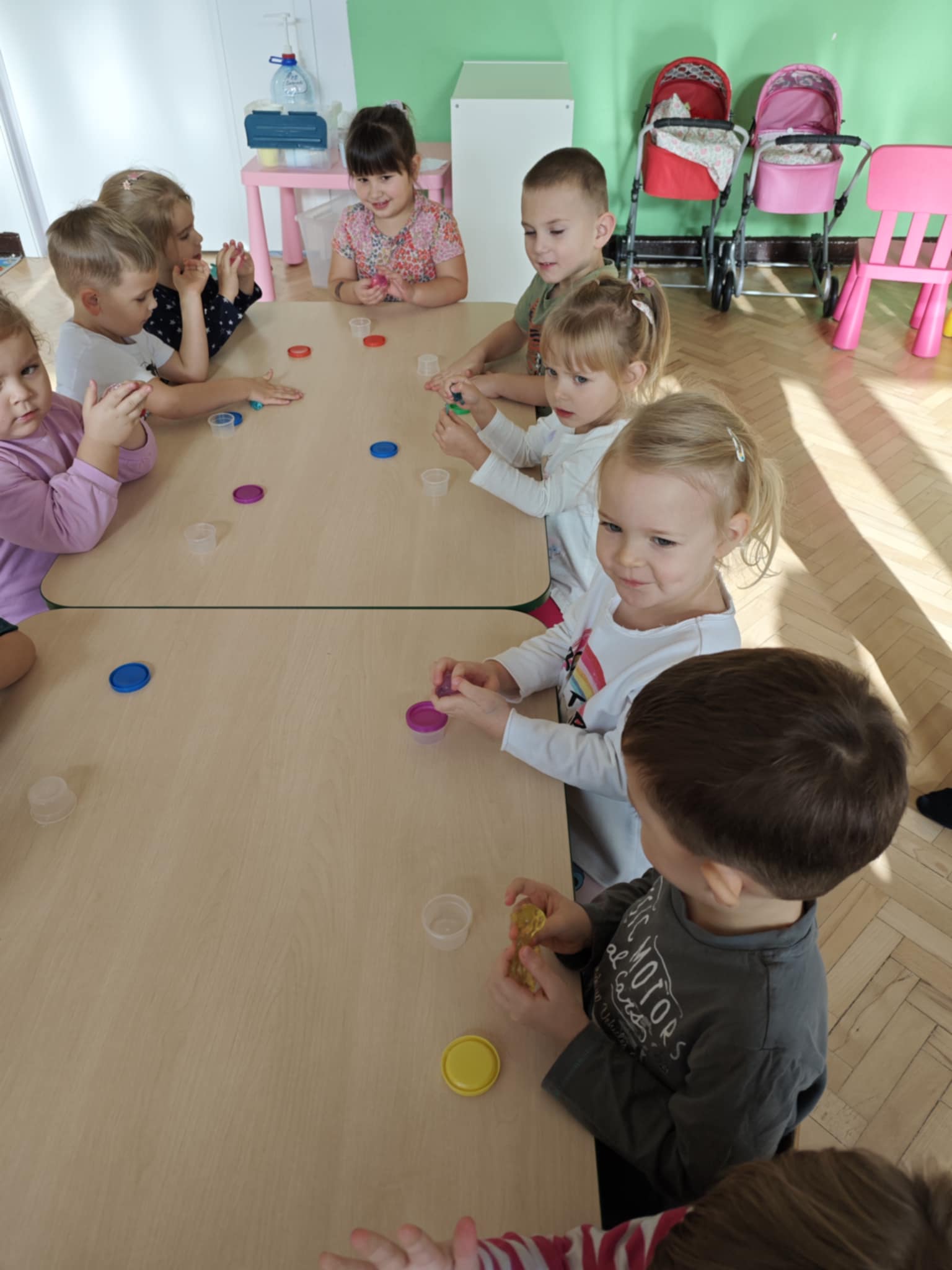 Ćwiczymy rączki - ugniatamy, rozciągamy, wałkujemy. a wszystko po to, by nasze rączki jak najlepiej przygotować do pisania w szkole.