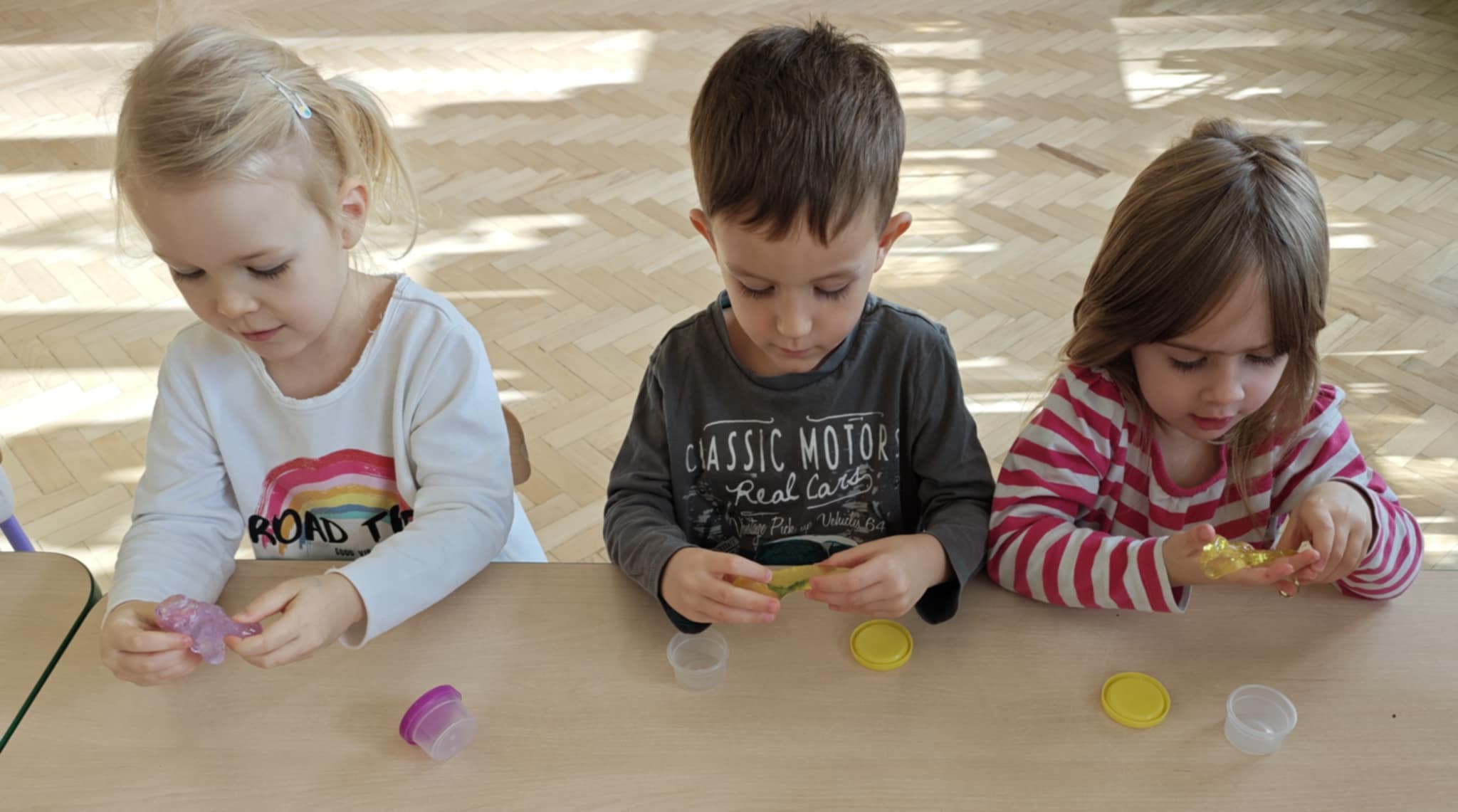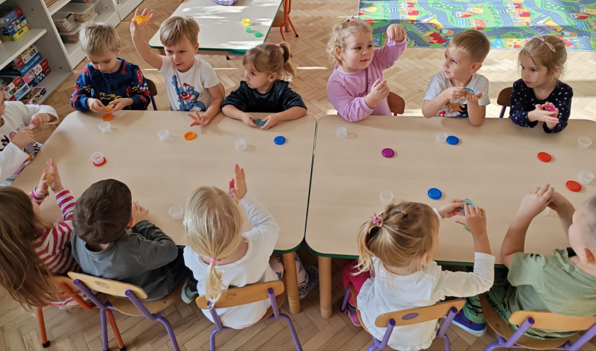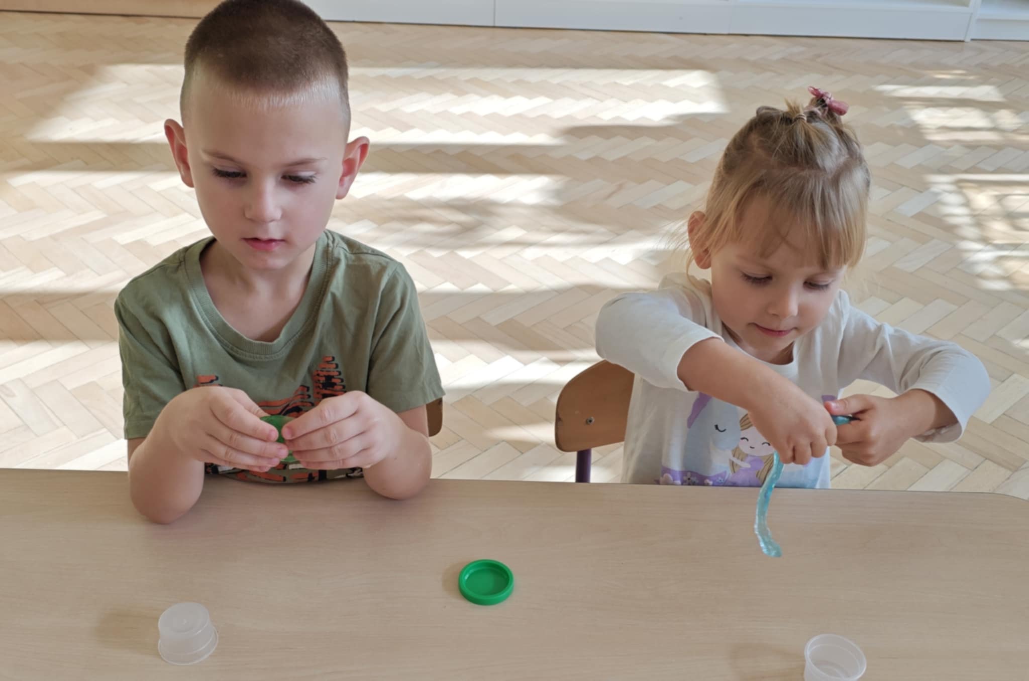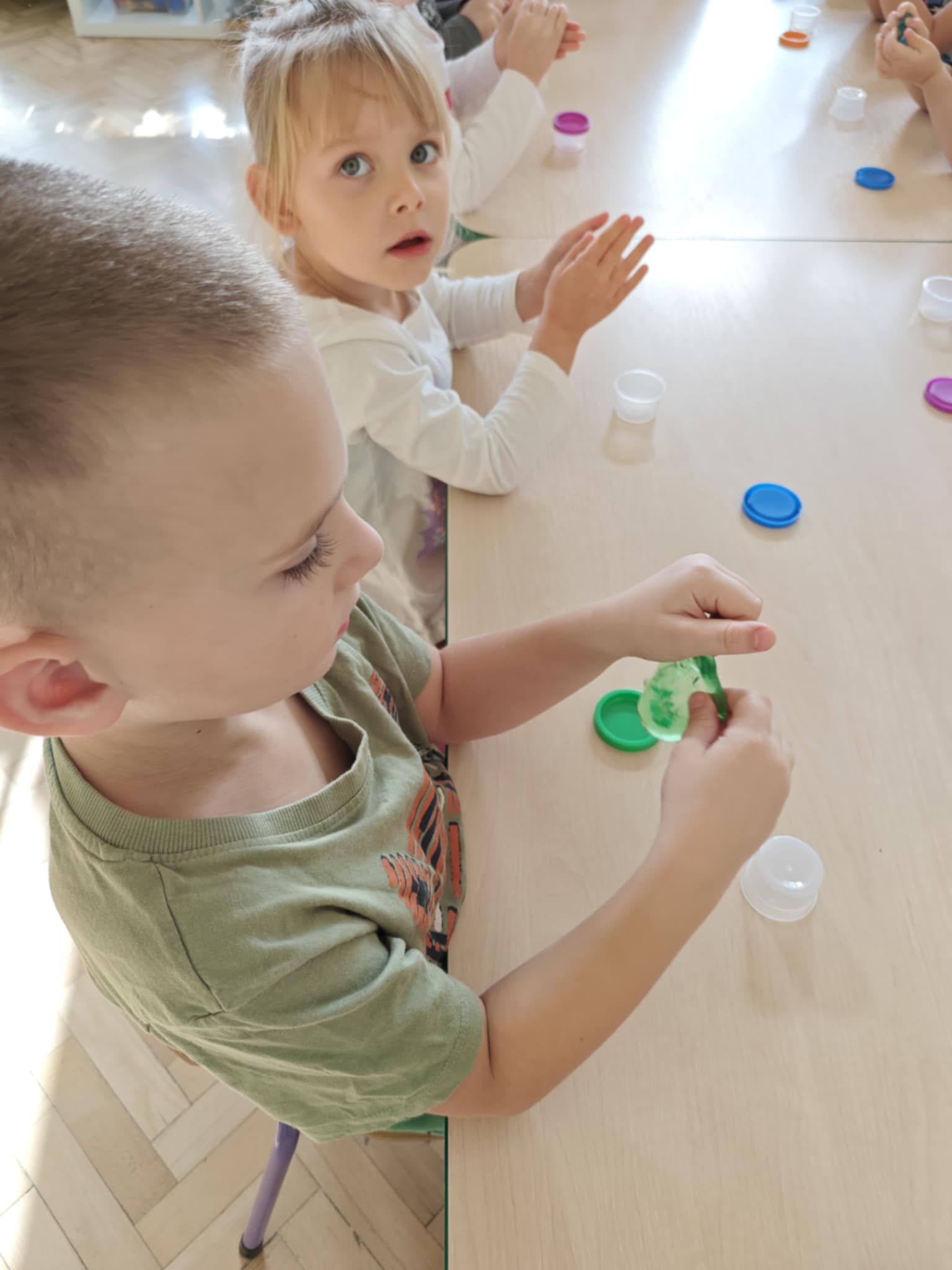 Ćwiczymy rączki - ugniatamy, rozciągamy, wałkujemy. a wszystko po to, by nasze rączki jak najlepiej przygotować do pisania w szkole.