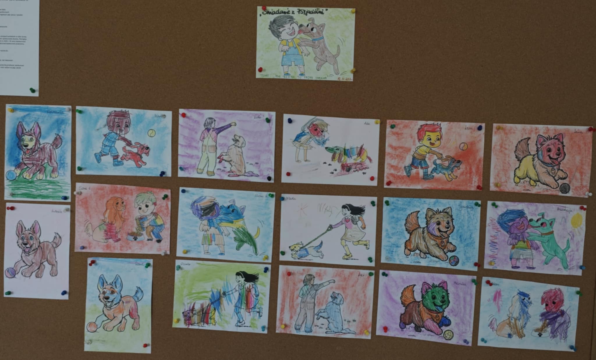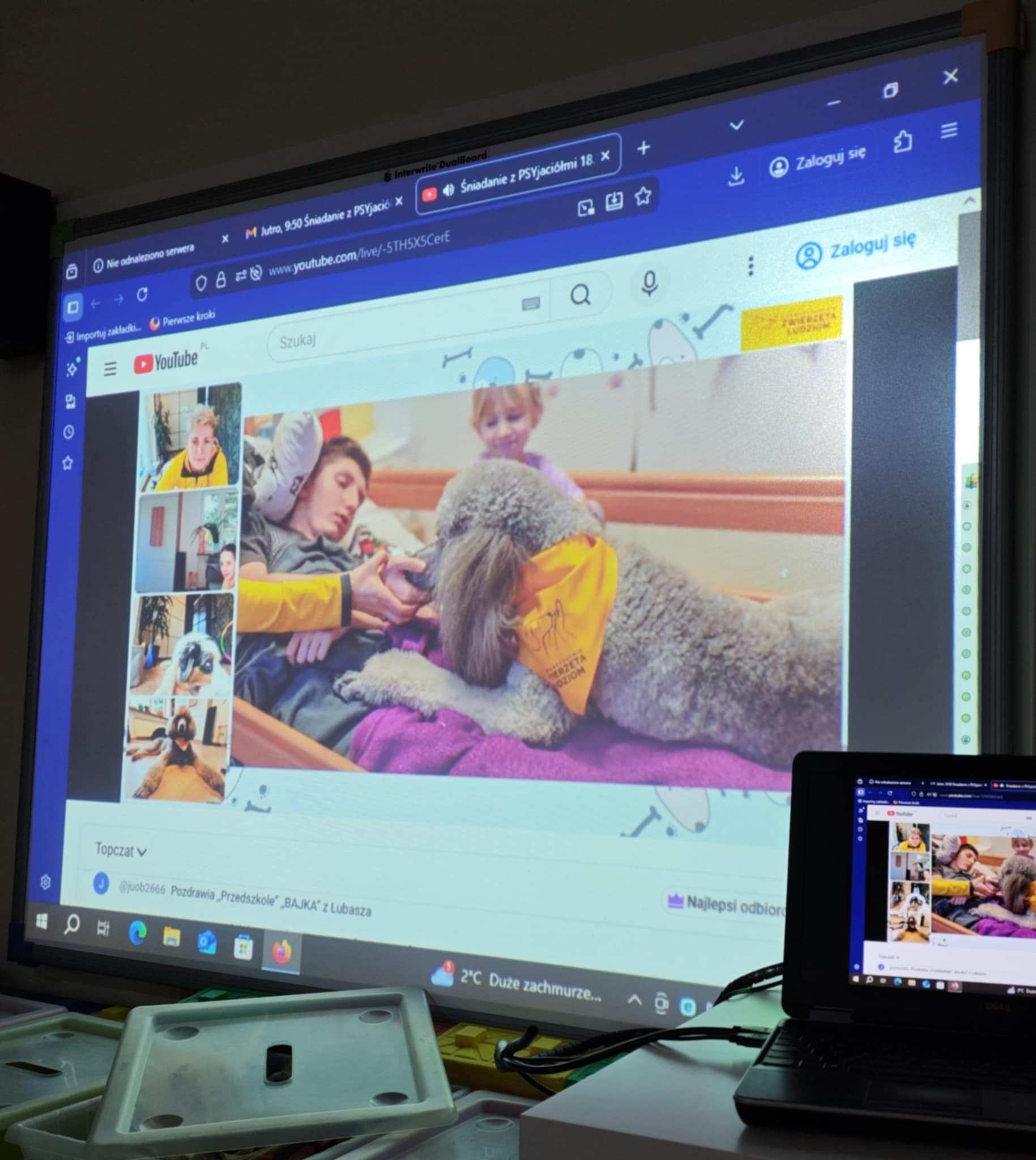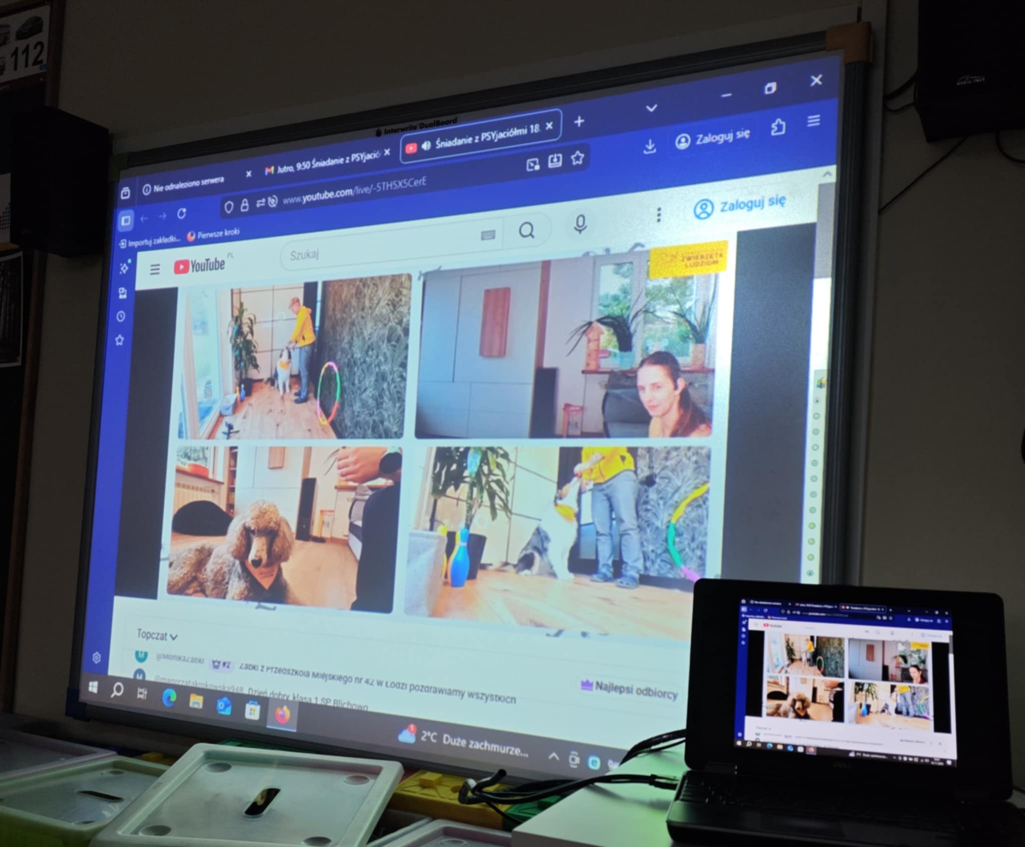 Nasze przedszkolaki biorą udział w cyklicznych spotkaniach z przedstawicielami fundacji Zwierzęta ludziom, by jak najwięcej dowiedzieć się o psich zwyczajach, upodobaniach, treningach czy opiece nad nimi. Dowiadują się również, w jaki sposób zwierzęta pomagają chorym pacjentom w szpitalach. To bardzo kształcące spotkania on-line z psimi trenerkami.