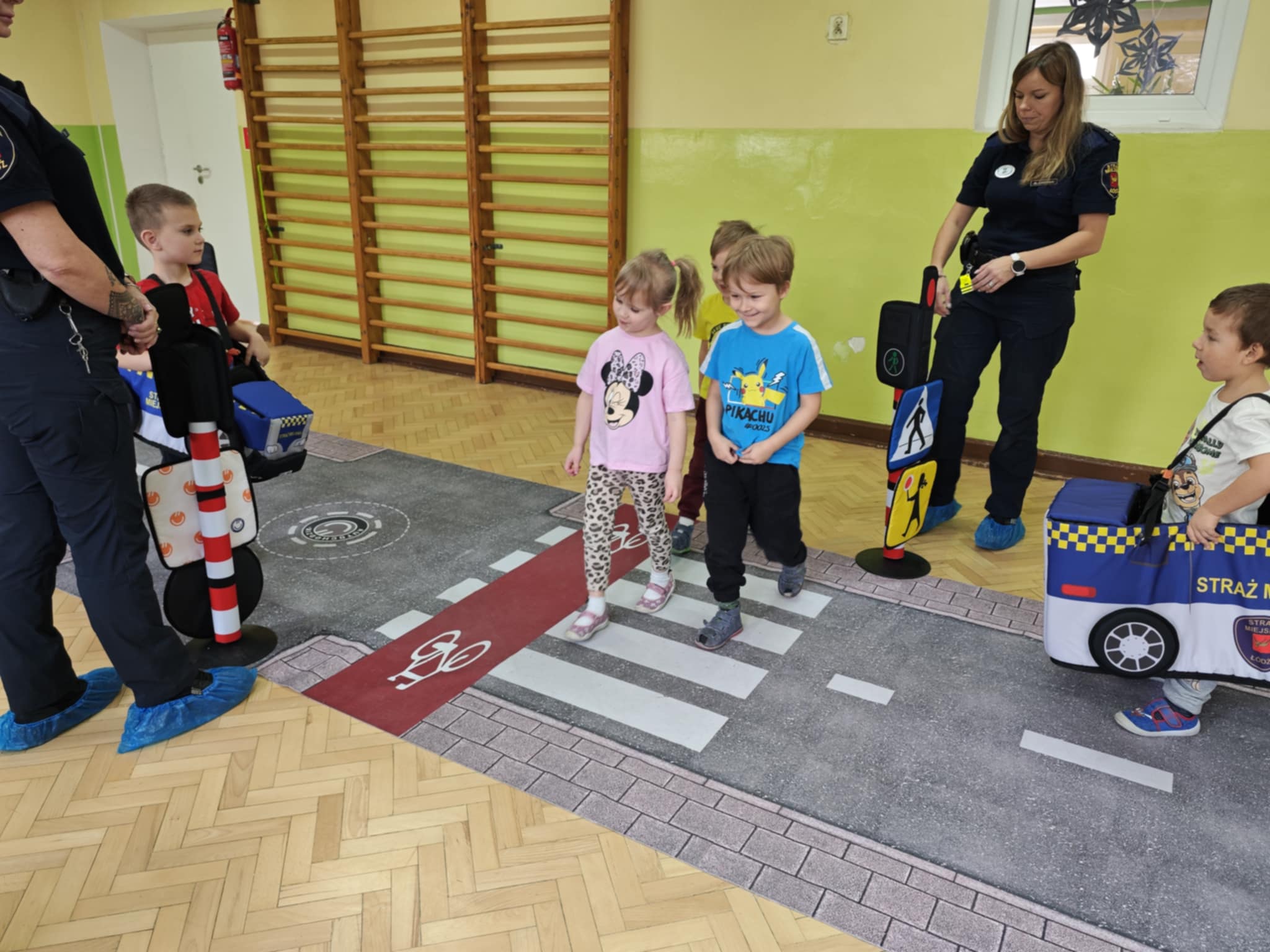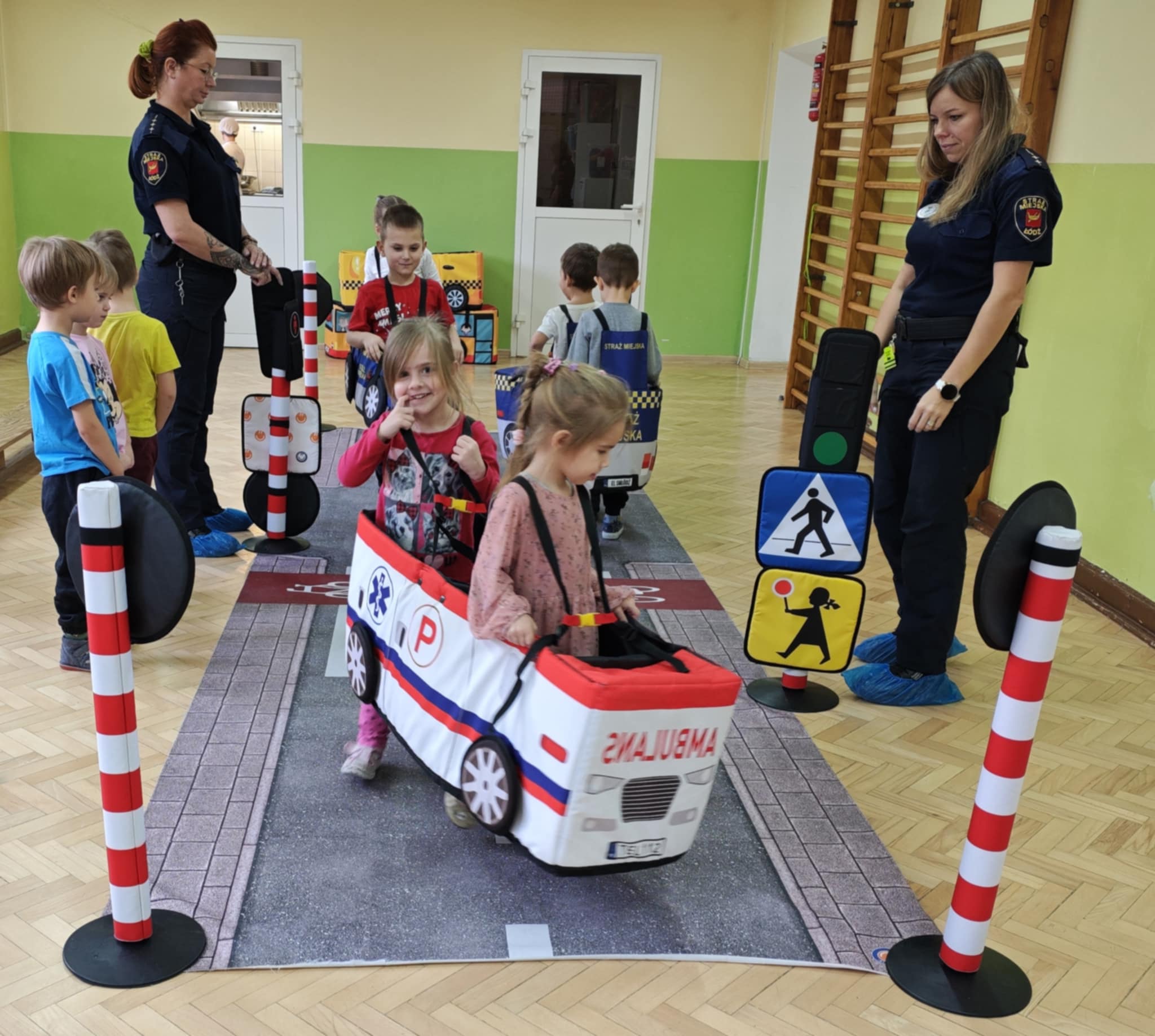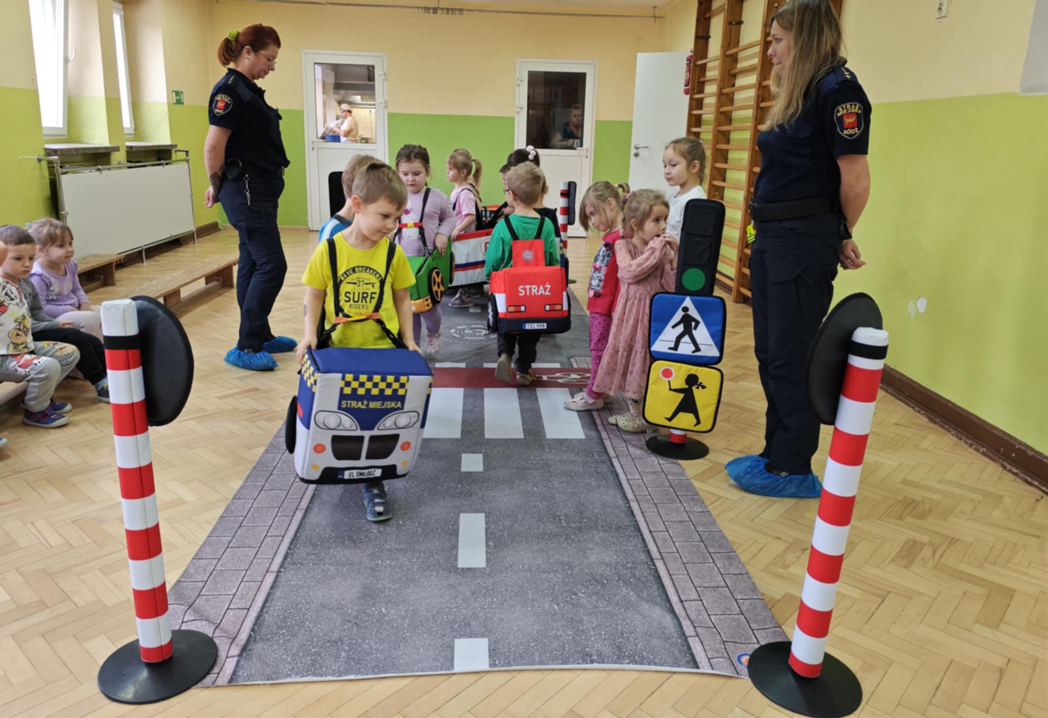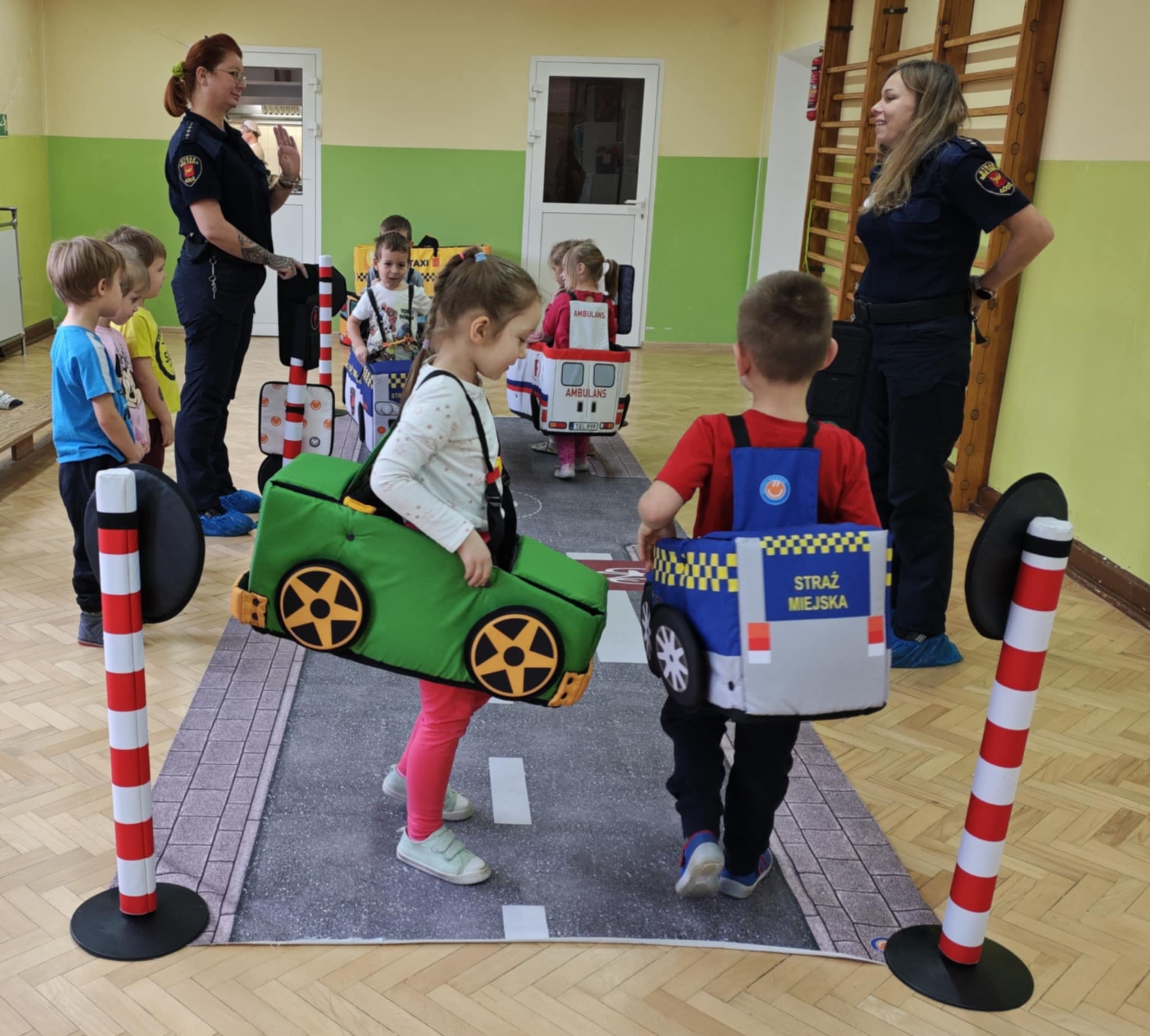 W piątek nasze Przedszkole odwiedzili przedstawiciele Straży Miejskiej, by omówić z dziećmi zasady bezpieczeństwa panujące na drodze, w domu, podczas spotkania z nieznajomym, czy też zgubienia się. Z doświadczenia wiemy, że takich rozmów nigdy za wiele. Później dzieci same wcielały się w rolę kierowców i pieszych, oczywiście stosując się do zasad i znaków drogowych.