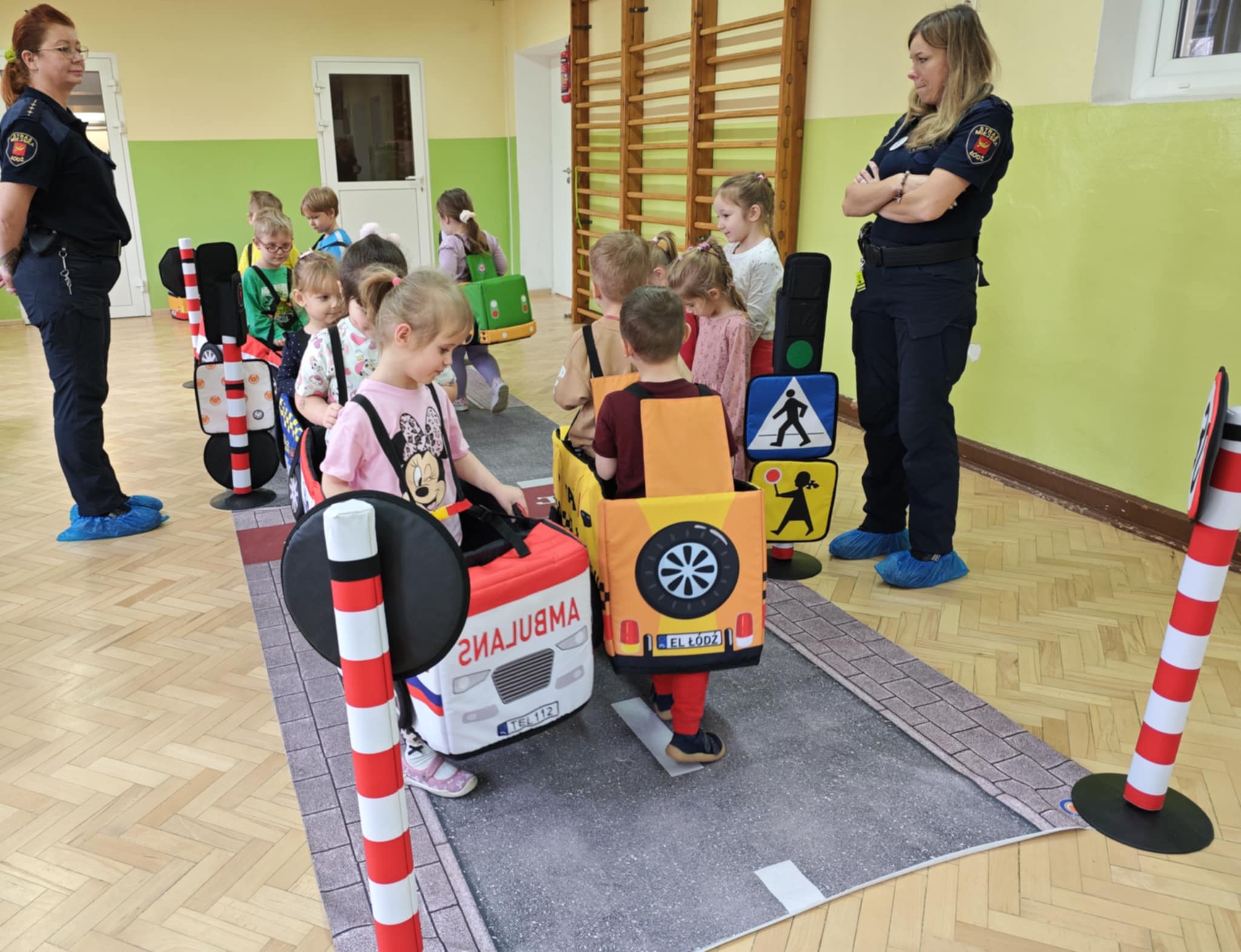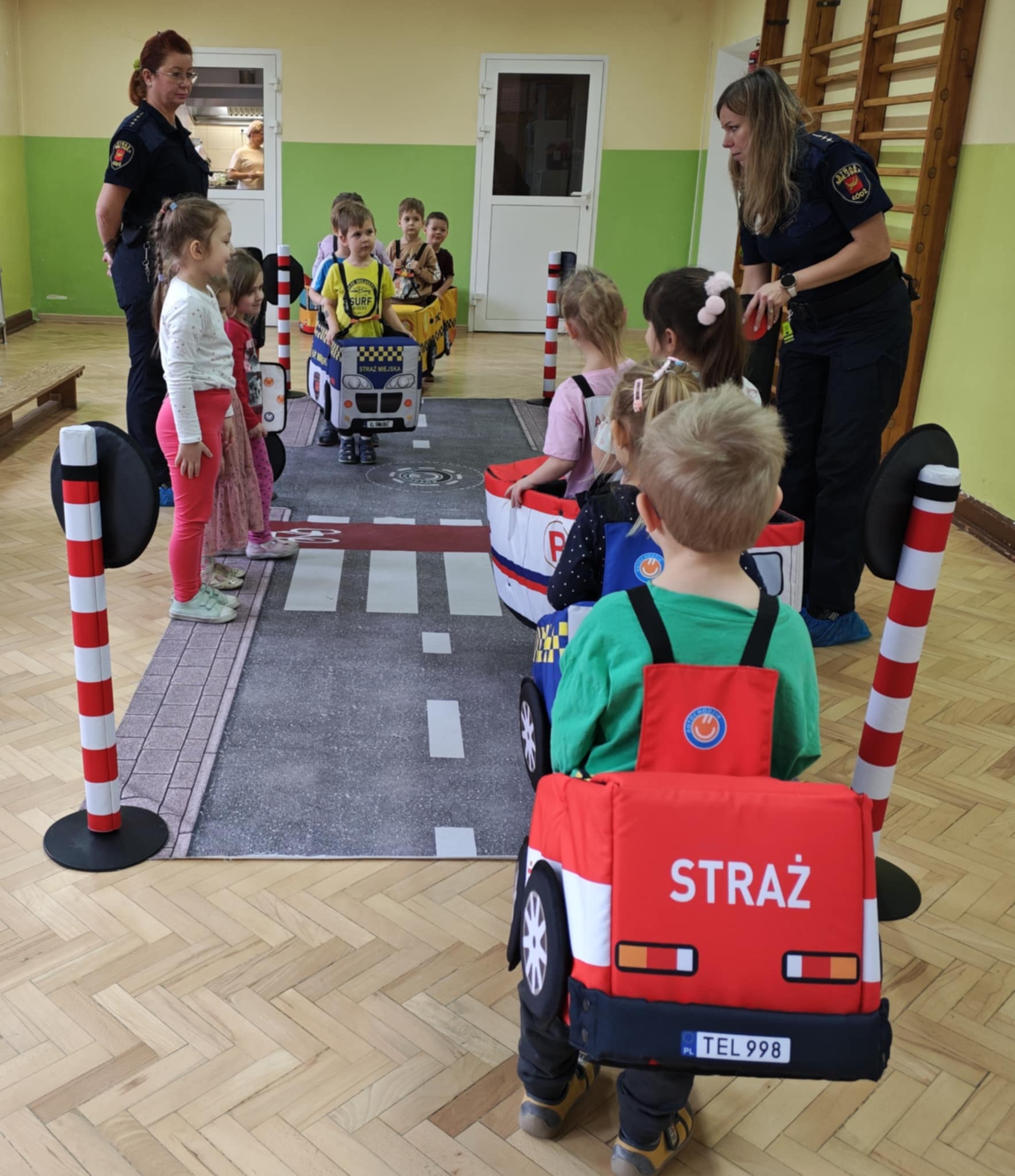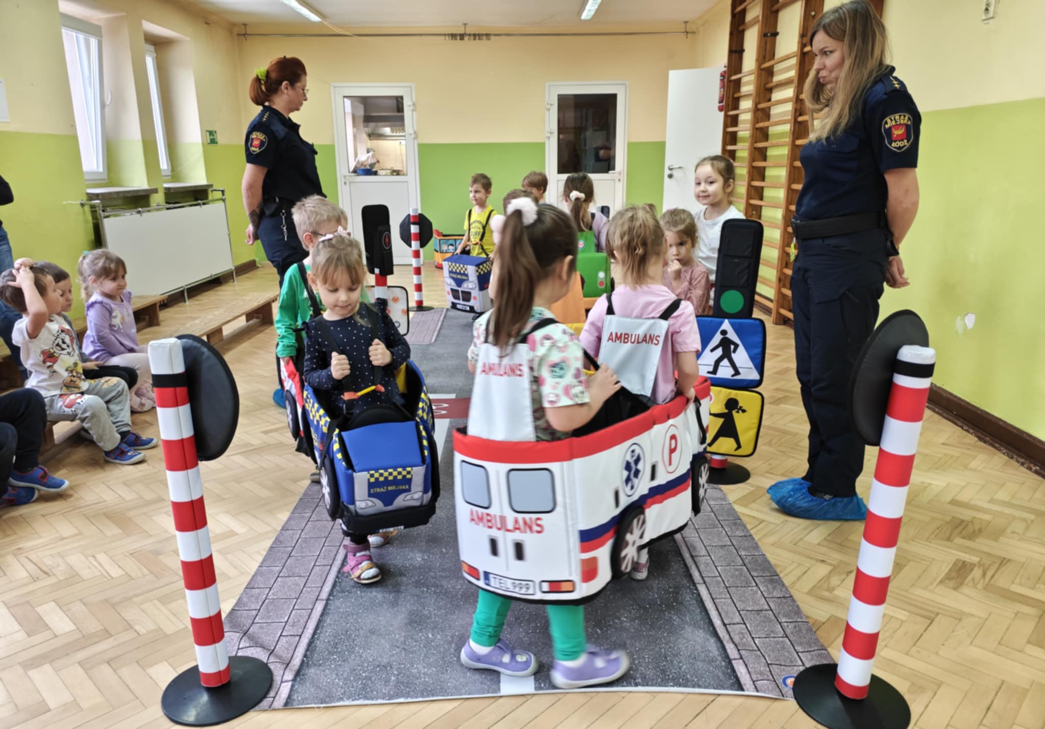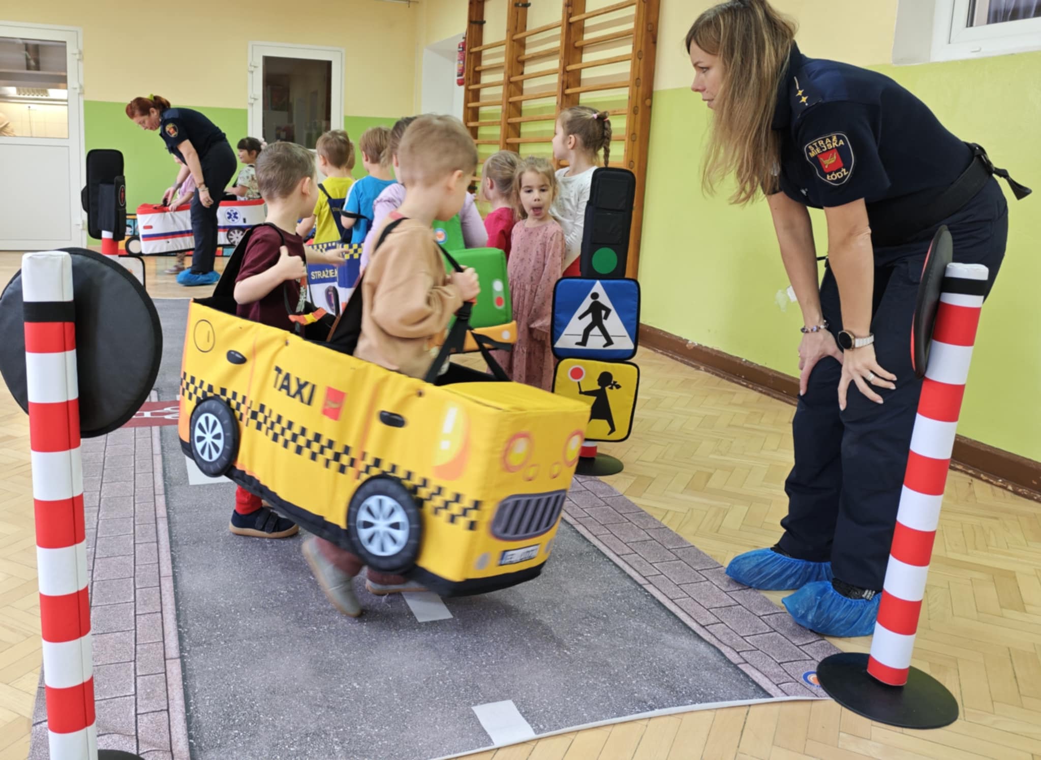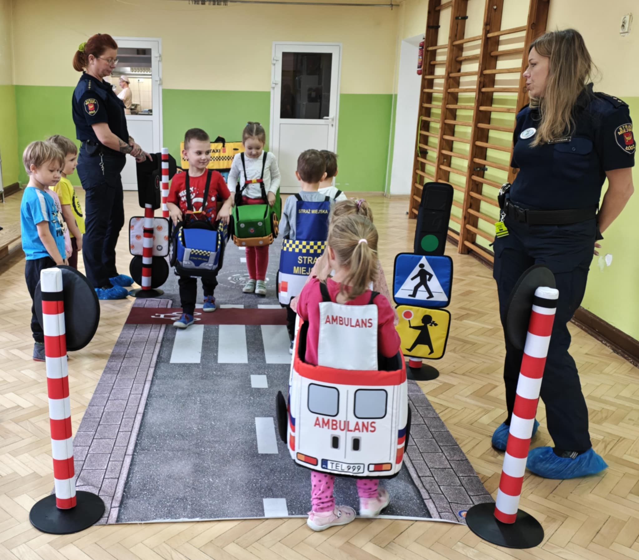 W piątek nasze Przedszkole odwiedzili przedstawiciele Straży Miejskiej, by omówić z dziećmi zasady bezpieczeństwa panujące na drodze, w domu, podczas spotkania z nieznajomym, czy też zgubienia się. Z doświadczenia wiemy, że takich rozmów nigdy za wiele. Później dzieci same wcielały się w rolę kierowców i pieszych, oczywiście stosując się do zasad i znaków drogowych.