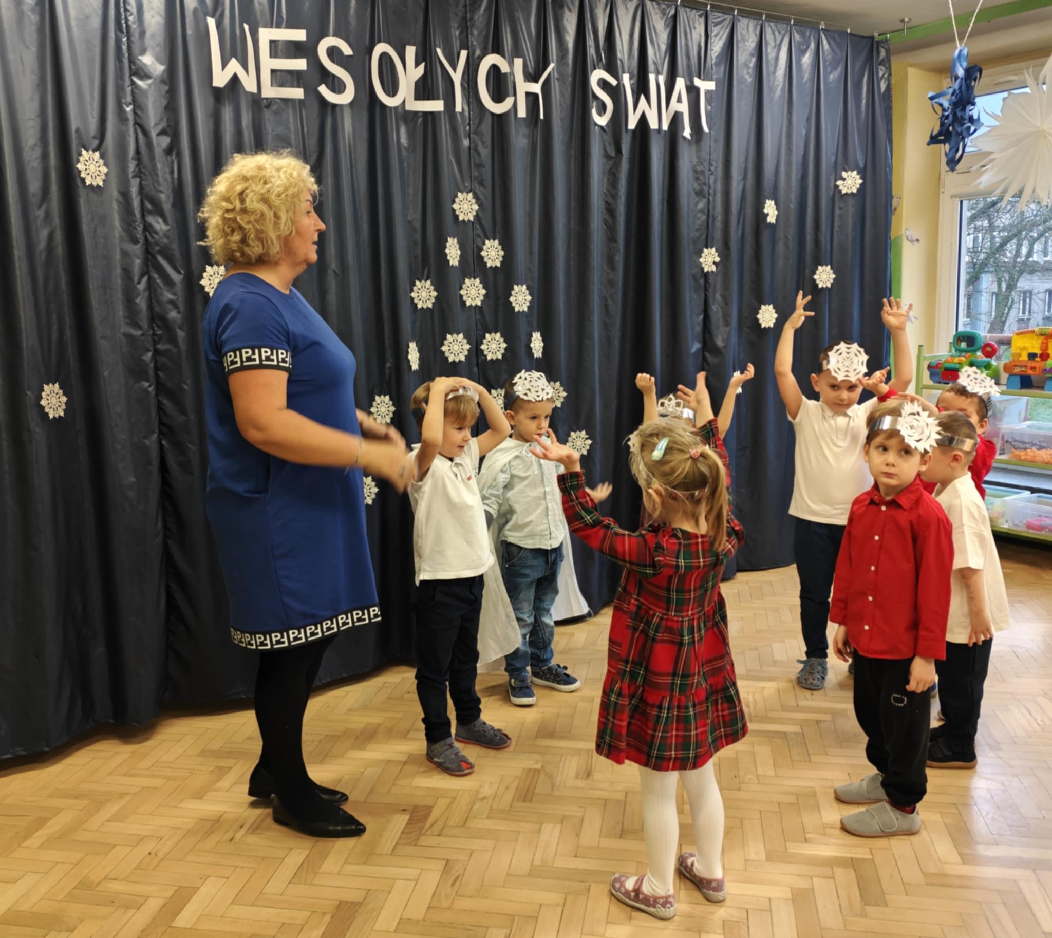 Zdrowych i wesołych świąt życzą wychowawcy i dzieci z grupy niebieskiej.
