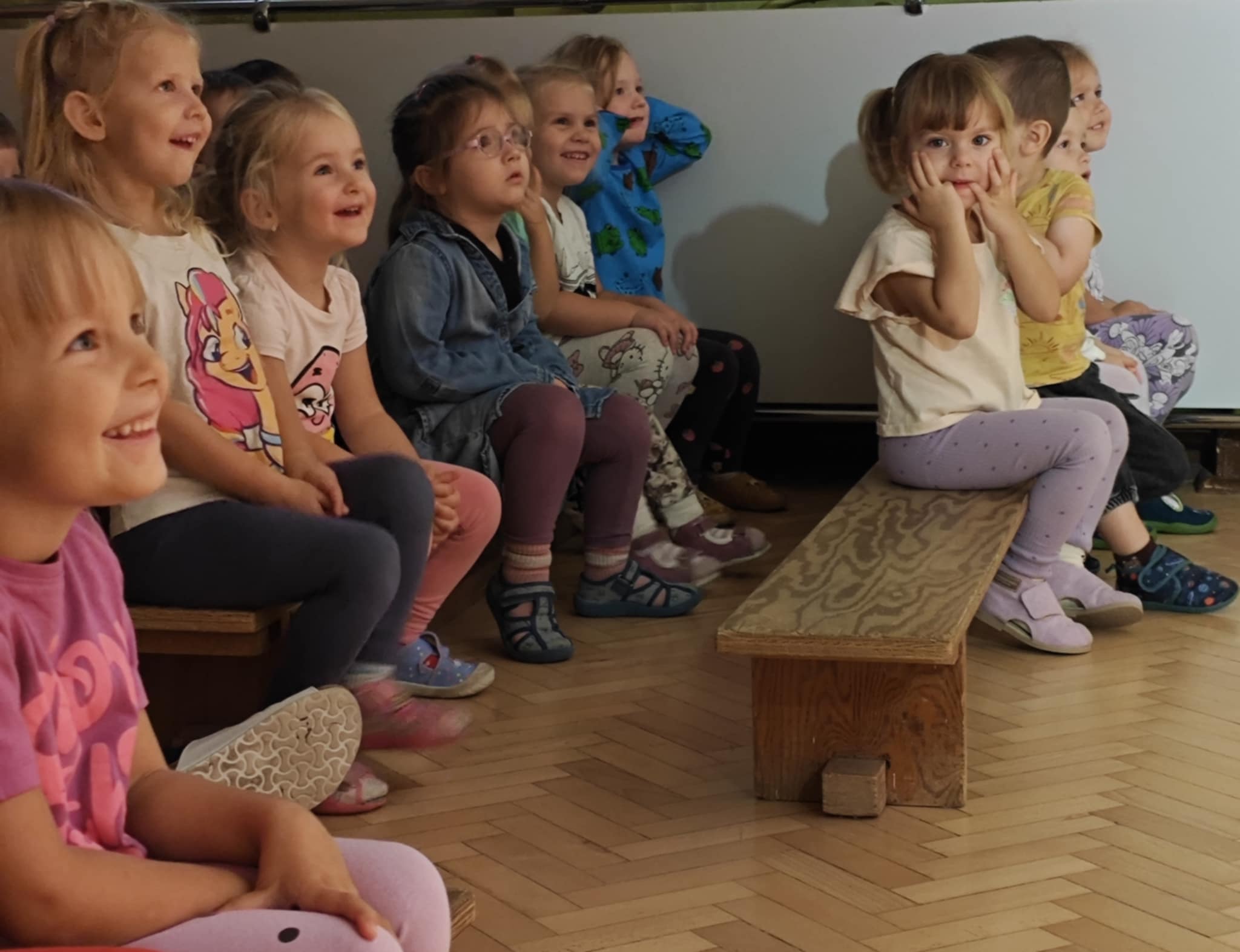 Nasze przedszkolaki miały przyjemność oglądać przedstawienie teatralne w swoim przedszkolu. Maluszki po raz pierwszy wzięły udział w tak wspaniałym wydarzeniu.