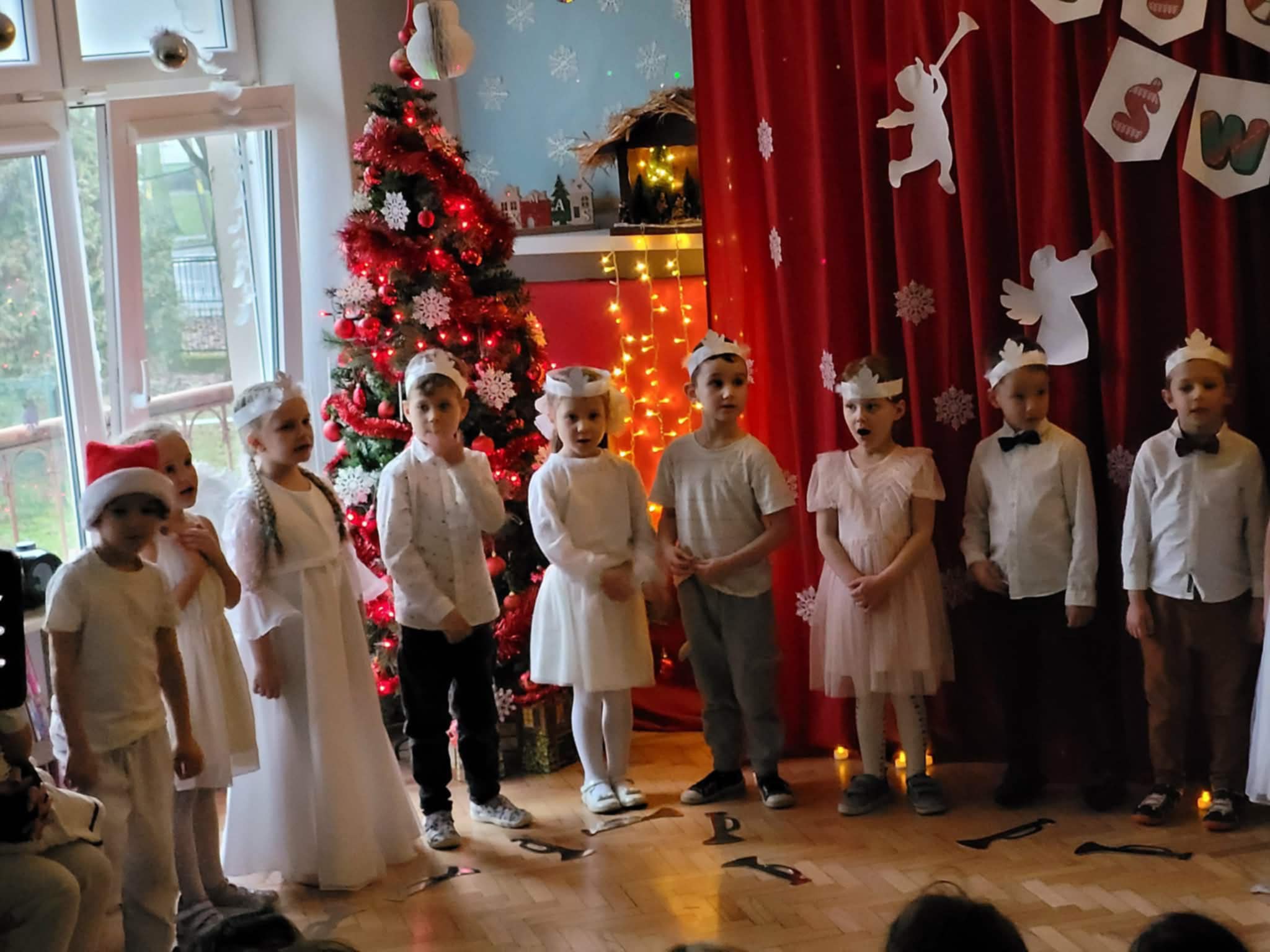 W dniu dzisiejszym w naszej grupie odbyła się uroczystość związana ze świętami Bożego Narodzenia. Dzieci odegrały krótką inscenizację do piosenki ,,Nie miały aniołki choinki na święta" - dzieci wcieliły się w role aniołków. Nie zabrakło też świętego Floriana strażaka oraz świętego Mikołaja. Następnie dzieci zaprezentowały Rodzicom wiersze o tematyce świątecznej oraz kolejne piosenki pt. ,,Choinka piękna jak las" oraz ,,Mikołaj". Zwieńczeniem występu było zaśpiewanie przez dzieci spokojnej i nastrojowej piosenki pt. ,,Nadchodzi niezwykły czas". Po przedstawieniu dzieci wręczyły Rodzicom własnoręcznie przygotowane prezenty - udekorowane bombki ze zdjęciami dzieci. Na koniec nadszedł czas składania świątecznych życzeń. Dziękujemy Wszystkim za obecność tego dnia. Jeszcze raz życzymy zdrowych, rodzinnych, spokojnych Świąt Bożego Narodzenia.