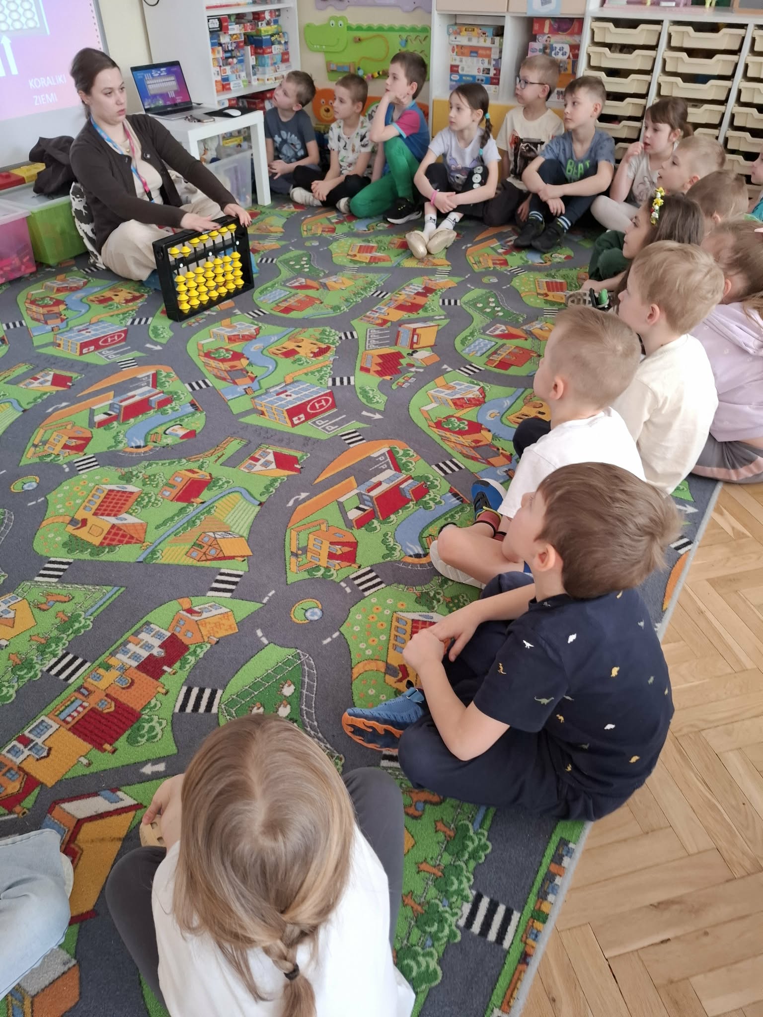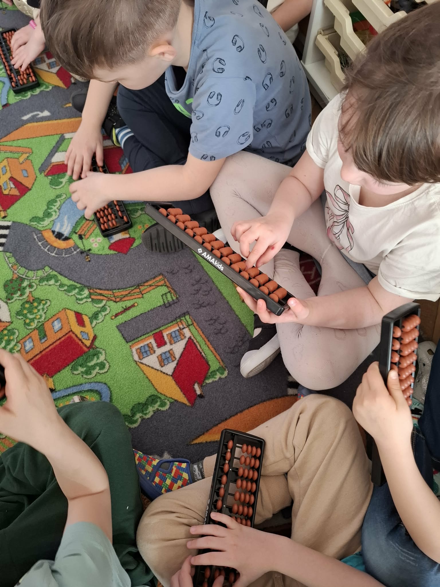W dniu dzisiejszym wzięliśmy udział w warsztatach z matematyki, podczas których doskonaliliśmy umiejętność dodawania i odejmowania z wykorzystaniem liczydeł soroban.