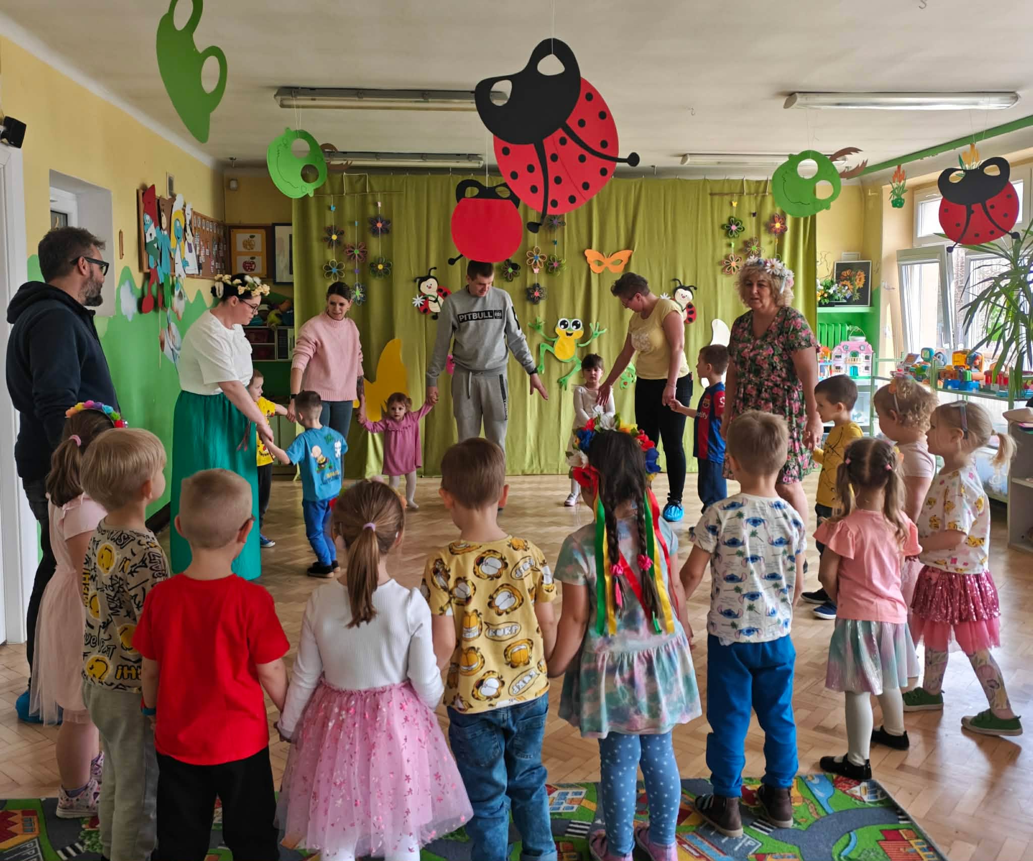 Dziękujemy serdecznie Rodzicom za tak liczne udziały w naszych dodatkowych zajęciach. Tym razem bawiliśmy się przy wiosennych piosenkach, śpiewaliśmy piosenki o wiośnie i rozwiązywaliśmy tematyczne zagadki.