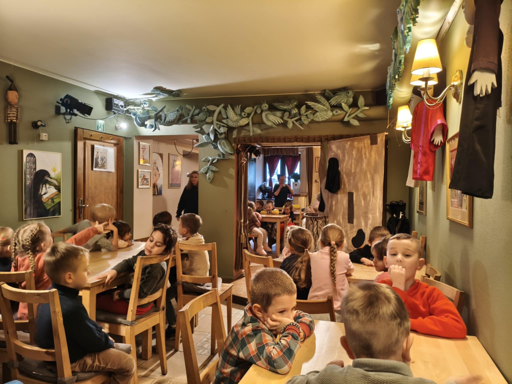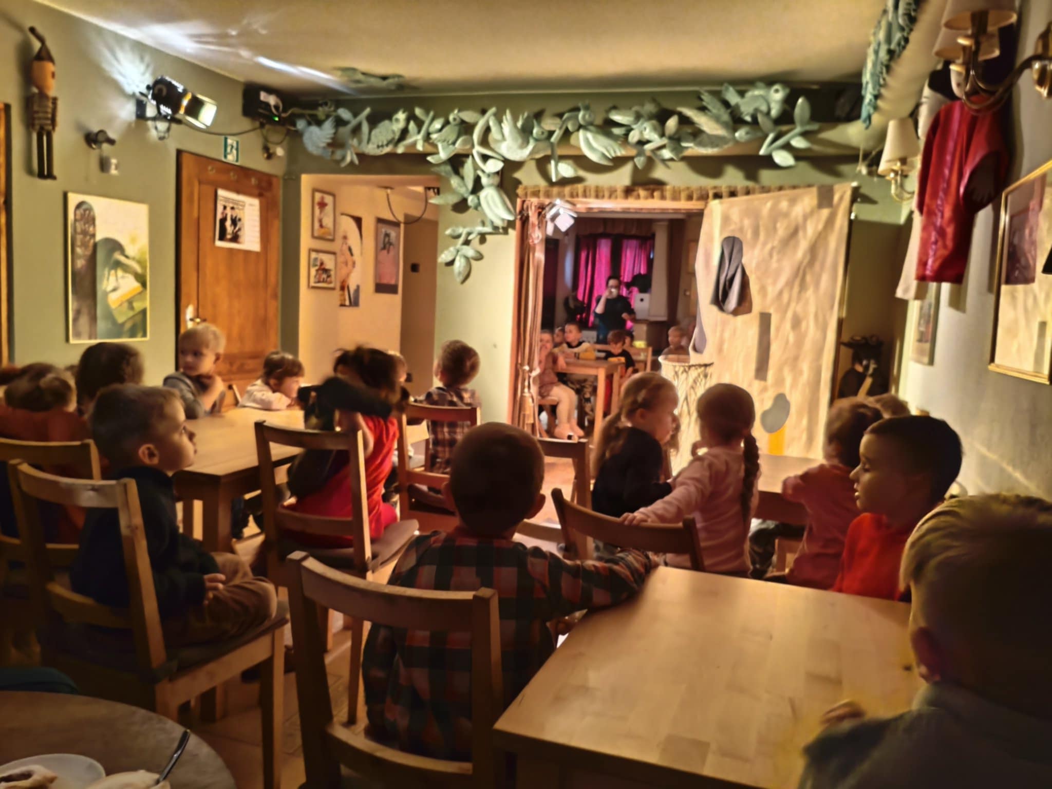 20 listopada grupa czerwona wybrała się do Baśniowej Kawiarenki na przedstawienie pt. "7 koźlątek". To baśń nie tylko o nieposłuszeństwie ale także o byciu ostrożnym w kontakcie z nieznajomymi. W tym rozśpiewanym spektaklu nie zabrakło zabawnych postaci i wielu śmiesznym sytuacji. Dzieci mogły oglądać pomysłowe kostiumy i lalki (marionetki sycylijskie i figurki na sprężynach).