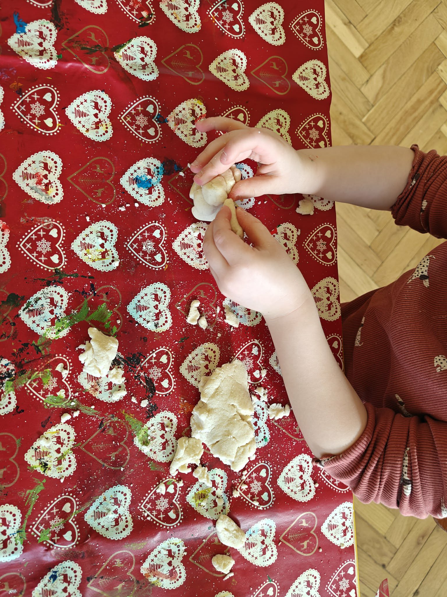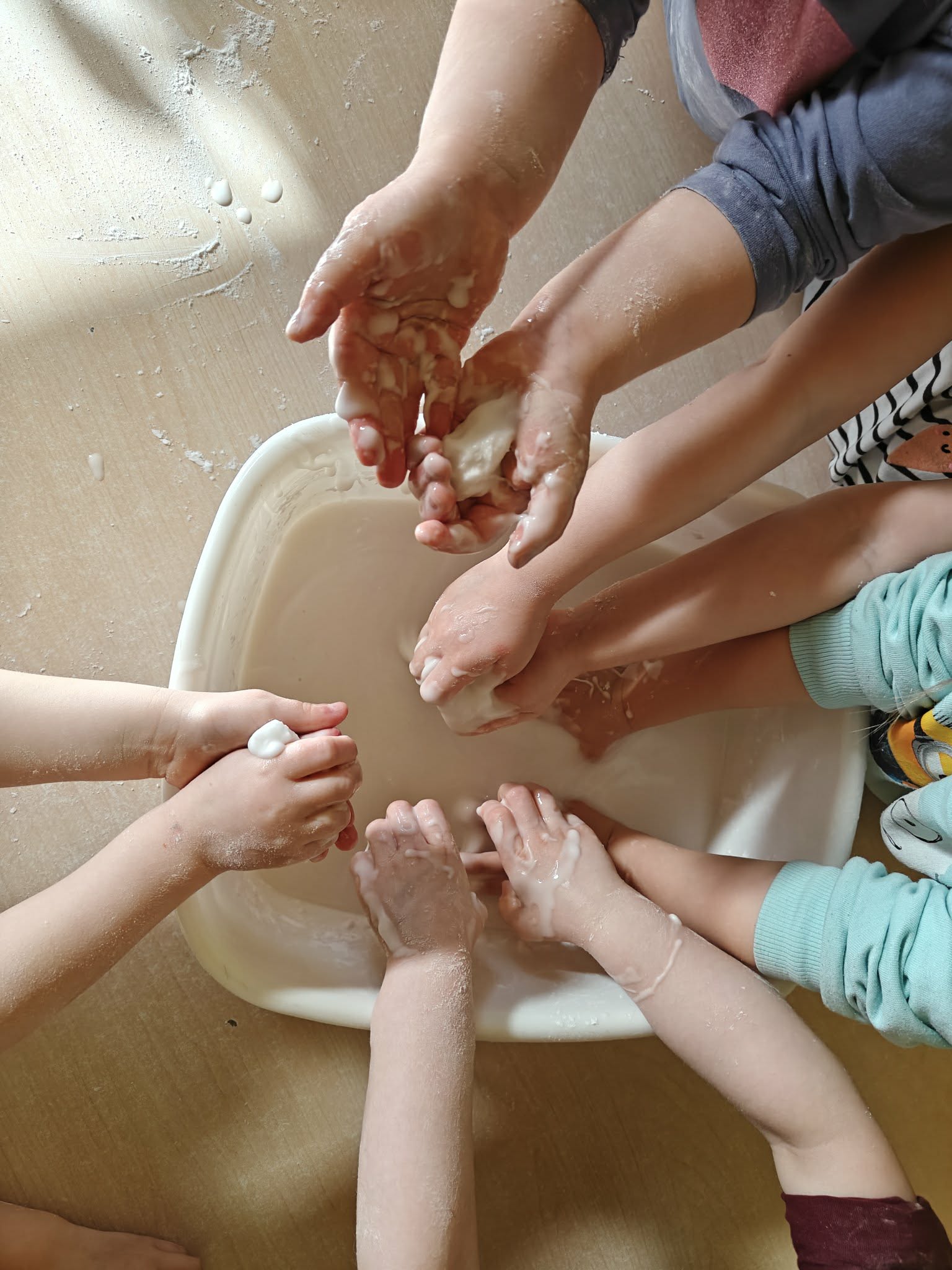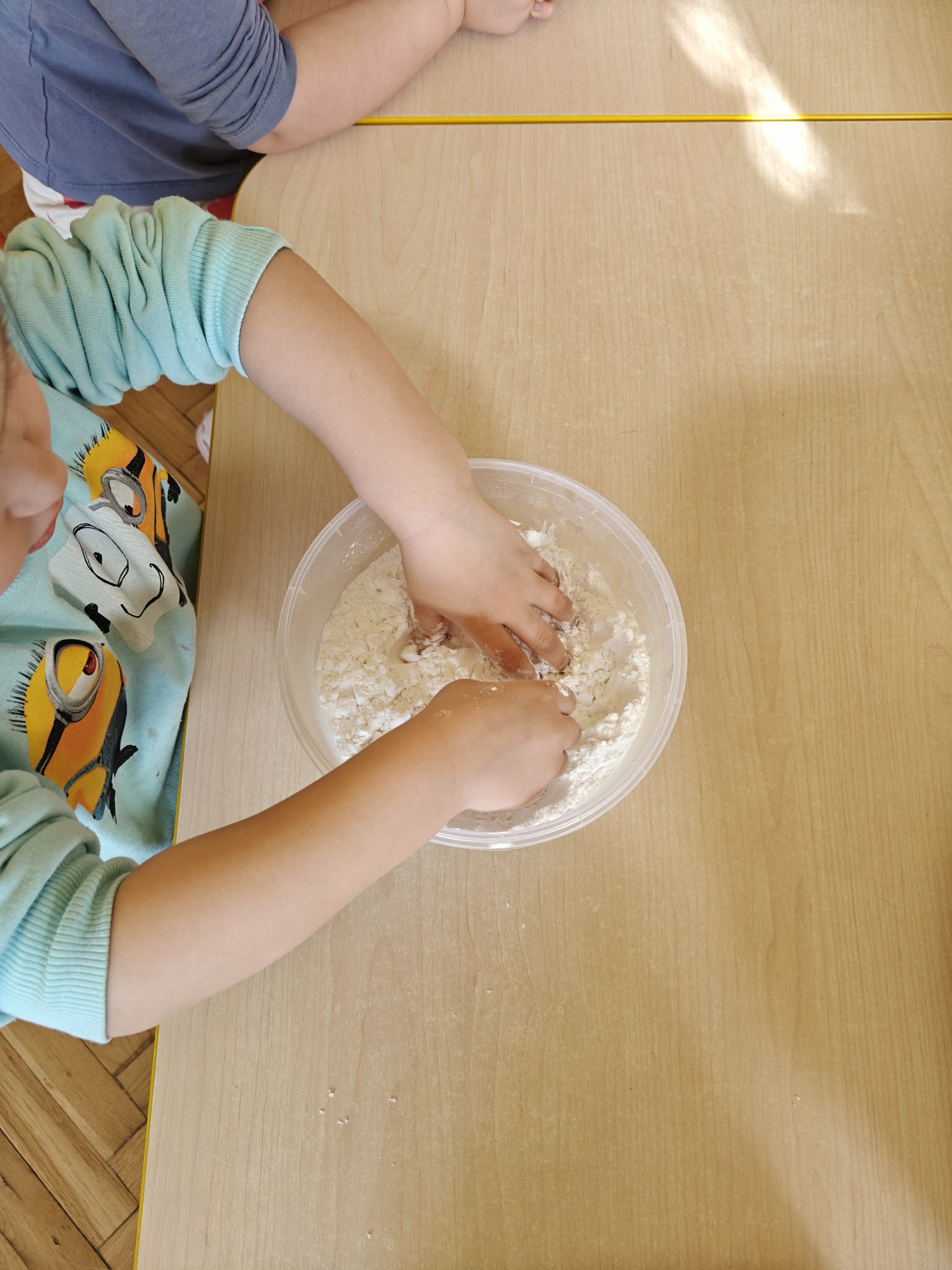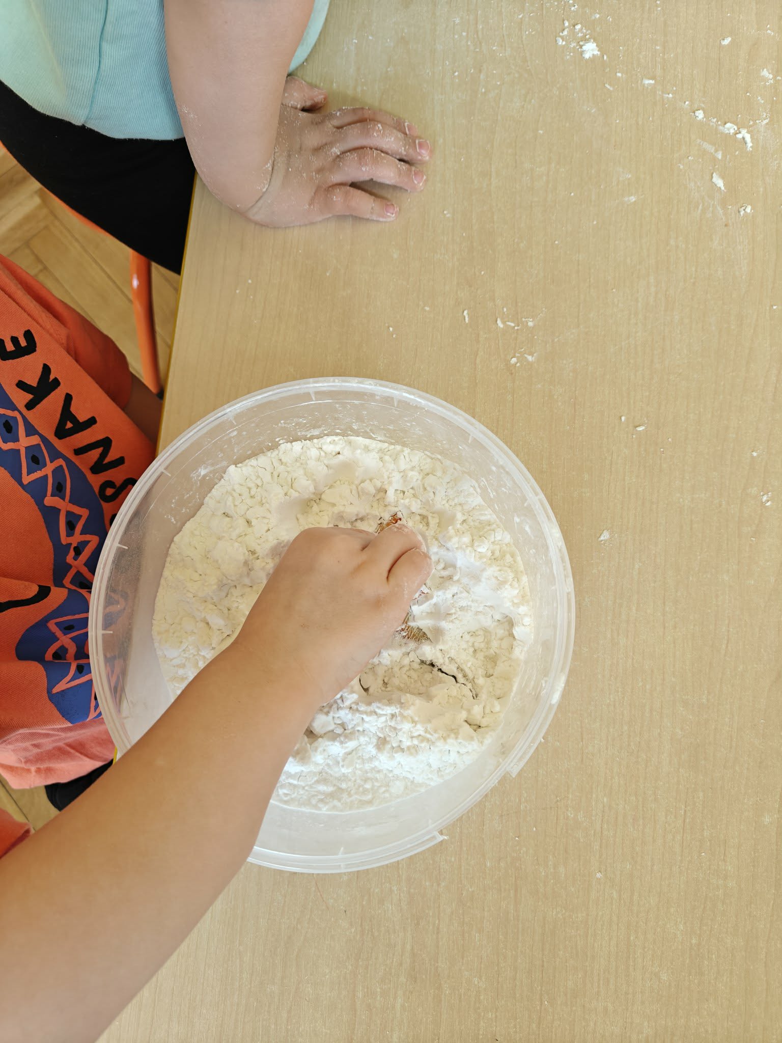 Dzieci sprawdzały dziś, czym jest ciecz nienewtonowska. Poszukiwały skarbów ukrytych w pojemniku z solą i w pojemniku z mąką. Następnie lepiły z masy solnej. Oto kilka zdjęć z tego dnia.