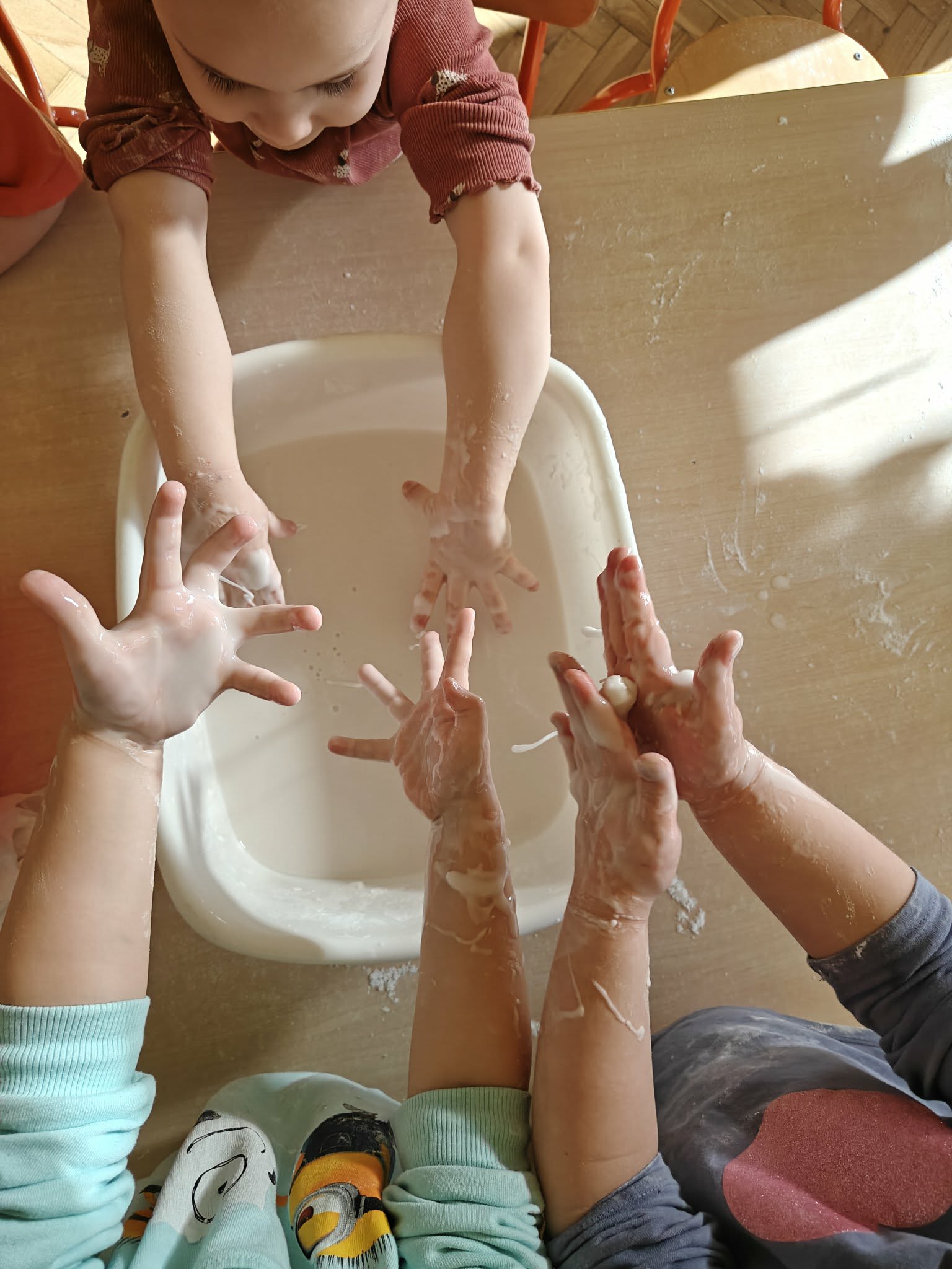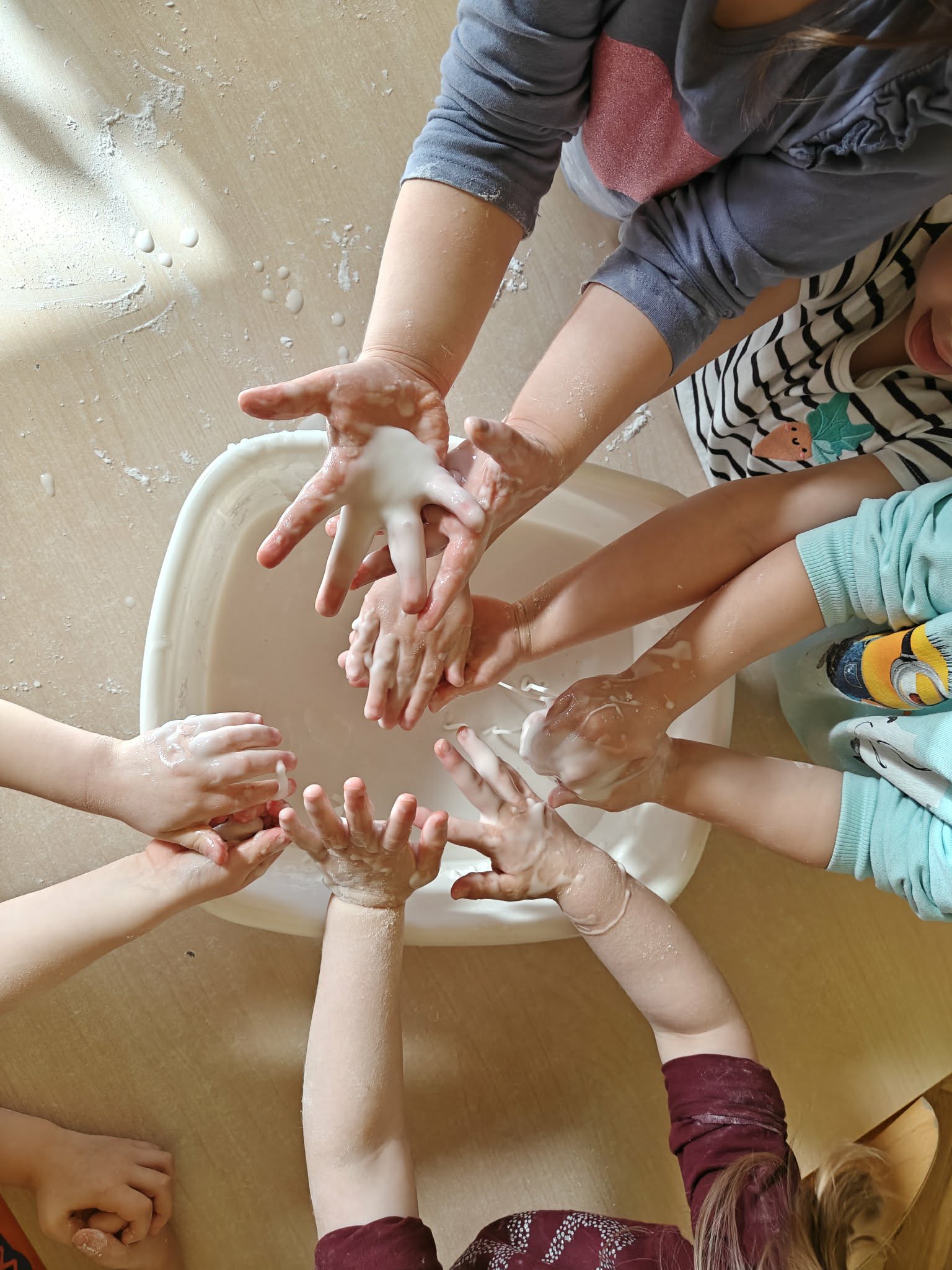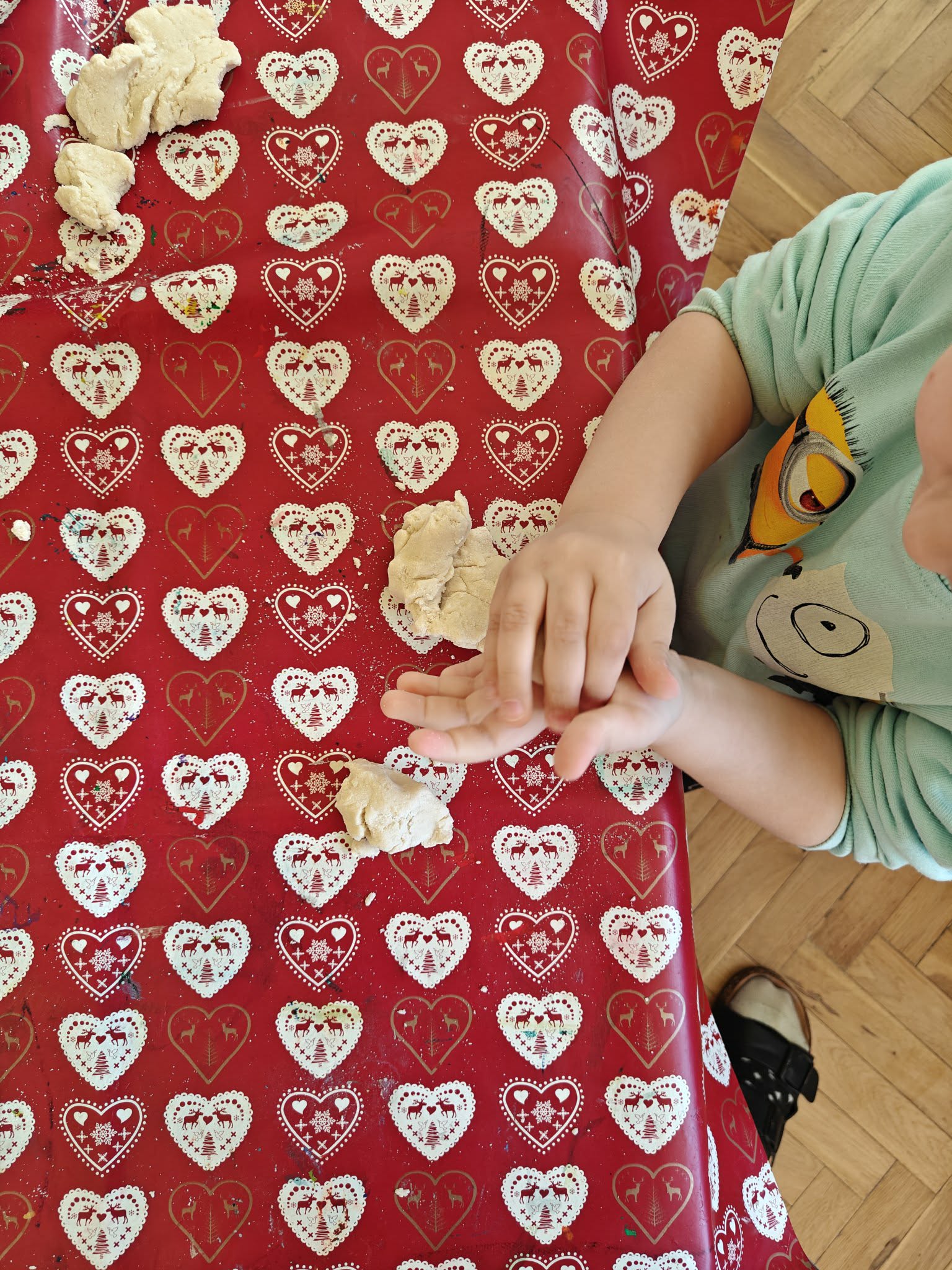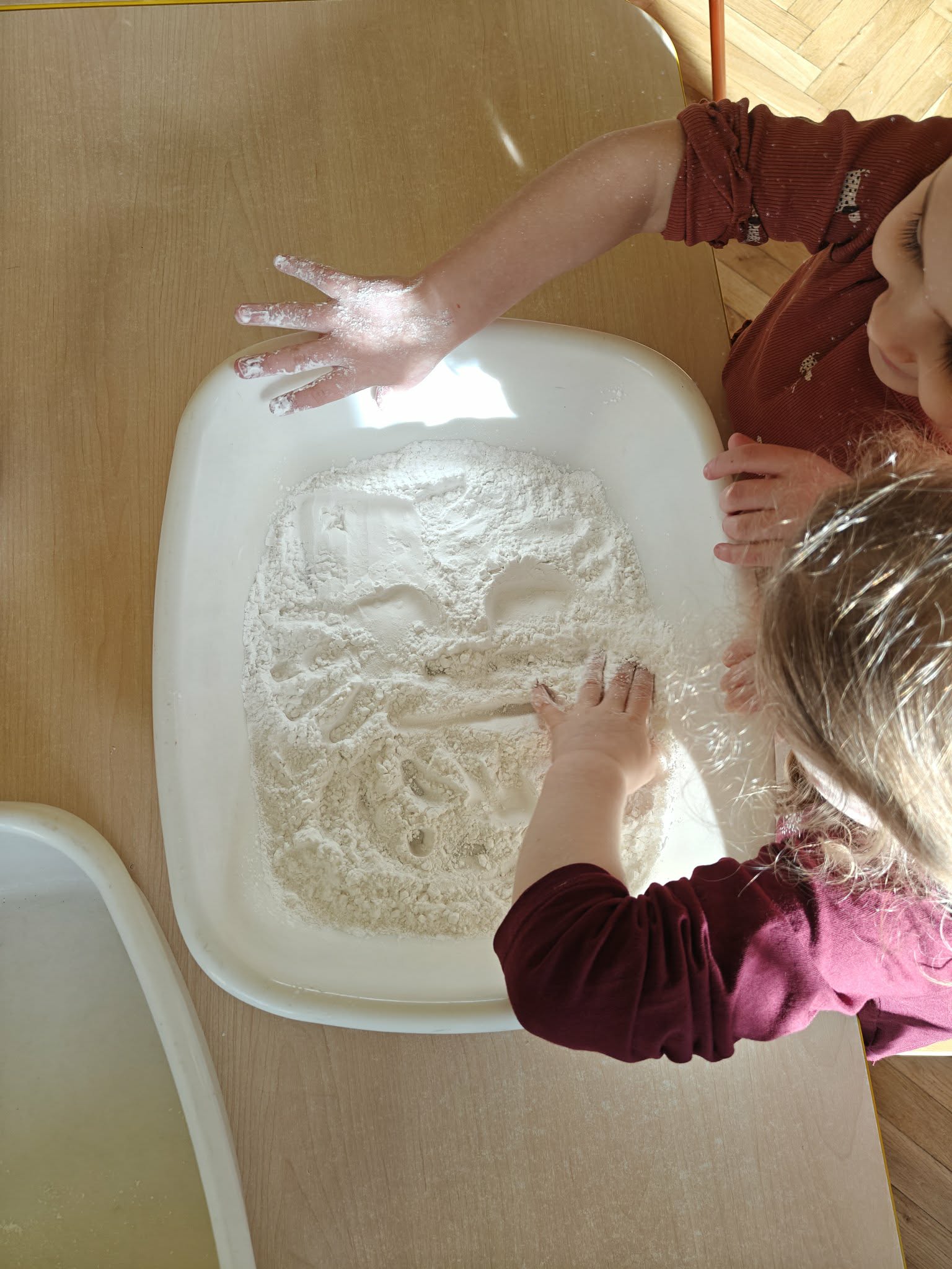 Dzieci sprawdzały dziś, czym jest ciecz nienewtonowska. Poszukiwały skarbów ukrytych w pojemniku z solą i w pojemniku z mąką. Następnie lepiły z masy solnej. Oto kilka zdjęć z tego dnia.